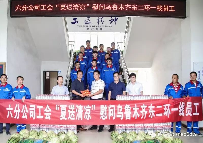 8月1日,,,,,,,二航局工程管理部副总司理谭黎晓,,,,,,,分公司党委副书记、工会主席陈畅,,,,,,,分公司纪检监察部副部长吕振雷,,,,,,,分公司工会办公室主任方海翔一行来到乌鲁木齐东二环,,,,,,,开展“夏送清凉”运动,,,,,,,亲热探望慰问一线工人。。。。。。。分公司司理助理、新疆片区生产谋划总认真人贾龙海,,,,,,,东二环项目党支部书记贾能文,,,,,,,东二环项目总工薛益中陪同。。。。。。。