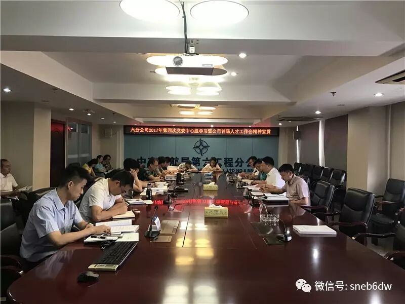 7月31日,,,,,,,分公司召开中心组扩大聚会,,,,,,,学习公司首届人才事情会精神。。。。。。。。分公司党委书记钱辉、总司理罗洪身划分就怎样贯彻落实公司首届人才事情会作了主要讲话,,,,,,,分公司在汉向导班子、司理助理就分担领域的人才事情提出了自己的意见和建议。。。。。。。。