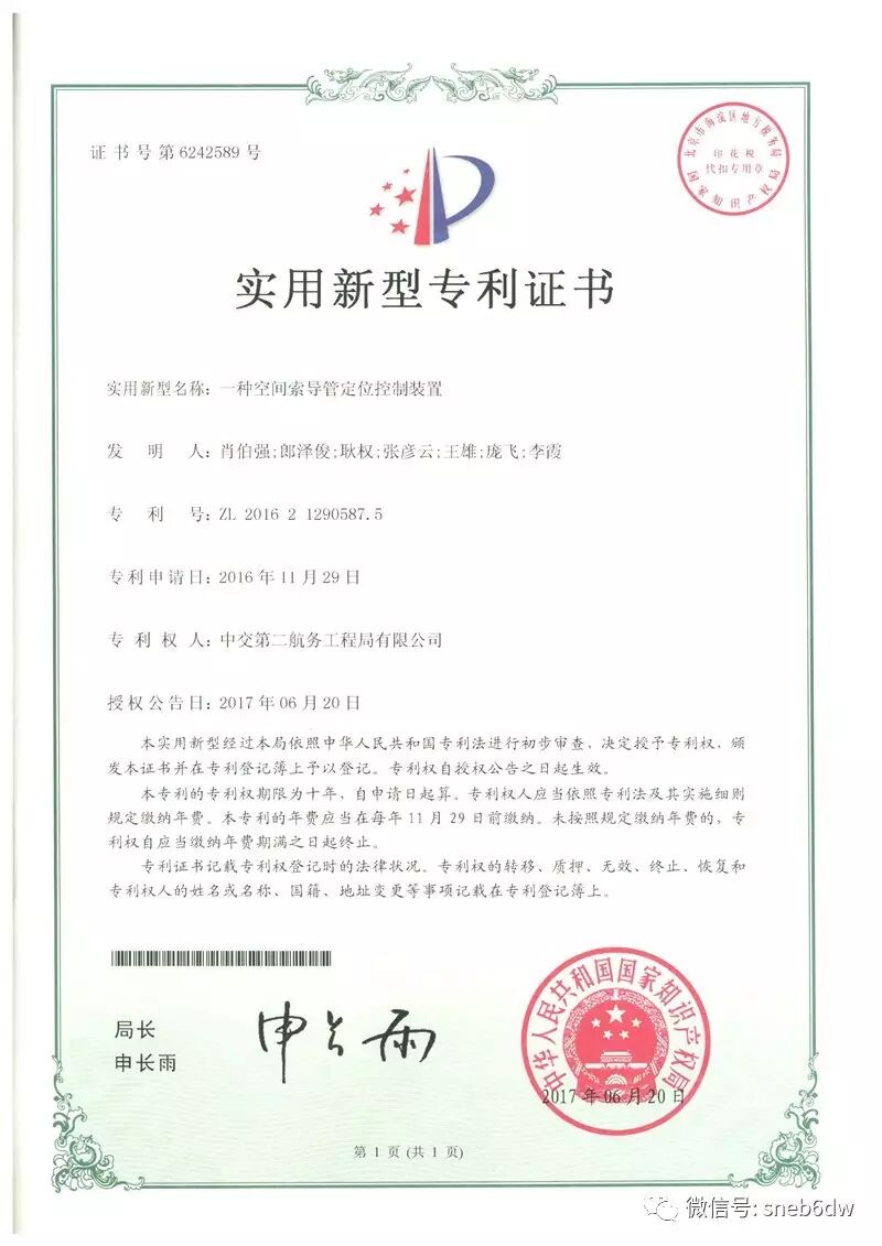 2016Äê11Ô£¬£¬£¬£¬£¬·Ö¹«Ë¾¼ì²âÖÐÐÄÆð¾¢×¼±¸¡¶Ò»ÖÖ¿Õ¼äË÷µ¼¹Ü¶¨Î»¿ØÖÆ×°Öá·ÊÊÓÃÐÂÐÍרÀûµÄÉ걨ÊÂÇé¡£¡£¡£¡£¡£¾Éó²é£¬£¬£¬£¬£¬ÓÚ2017Äê6ÔÂ20ÈÕ¹ú¼Ò֪ʶ²úȨ¾Ö½ÒÏþÊÊÓÃÐÂÐÍרÀûÖ¤Êé¡£¡£¡£¡£¡£