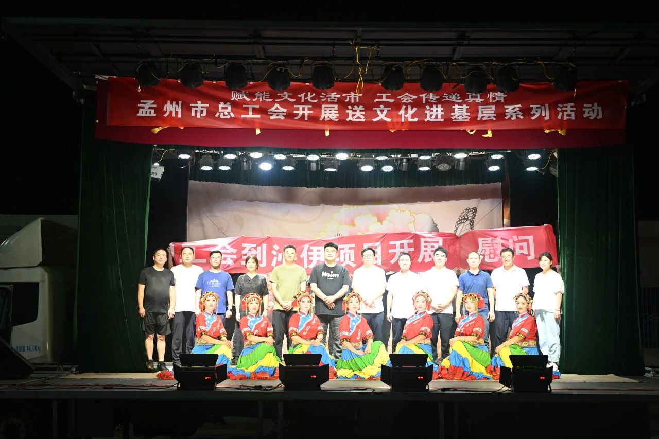 当天黄昏,,,,,,项目工会团结属地孟州市总工会,,,,,,组织开展送文化进下层上门慰问演出。。。。。。。孟州市总工会、曲艺团等多家单位总计30余名演员,,,,,,在项目驻地为职工们携手泛起了13个节目,,,,,,涵盖朗诵、赞美、舞蹈、地方戏曲等,,,,,,好一顿丰富的“精神大餐”。。。。。。。