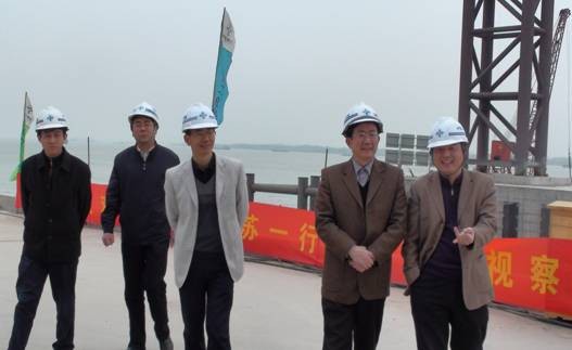 四月八日 ,,,, ,镇江市人大主任、市总工会主席陈苏及市总副主席一行四人 ,,,, ,来三公司二重码头工程项目对我公司工会关于民主管理及人为协商制度举行调研 。。。。。