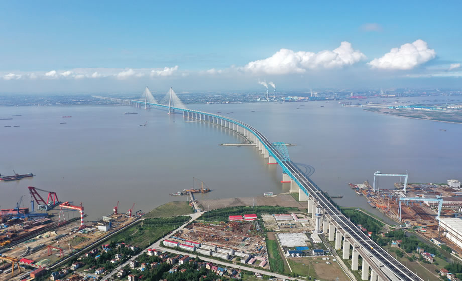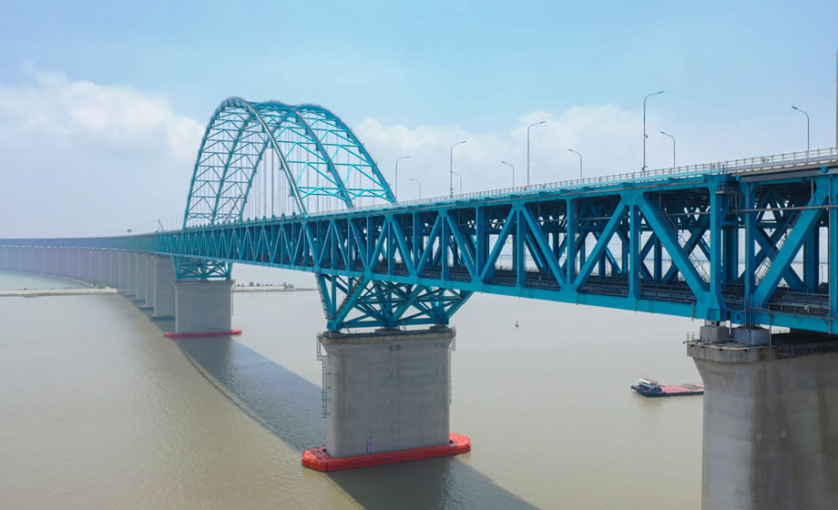 沪苏通长江公铁大桥是锡通高速公路、沪通铁路、通苏嘉甬铁路共通的过江通道,,, , ,南起苏州张家港市,,, , ,北至南通市通州区,,, , ,大桥全长11072米。。。。。。。其中公司参建北岸引桥铁路单建段与公铁合建段,,, , ,水中0-3号墩主桥以及天生港专用航道桥。。。。。。。天生港专用航道桥接纳主跨336米的刚性梁柔性拱结构,,, , ,为天下上最大跨度公铁两用钢拱桥,,, , ,接纳“先梁后拱、主梁悬拼、拱肋转体”的施工计划。。。。。。。