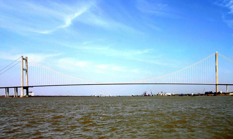 润扬长江大桥位于江苏省镇江、扬州两市西侧,,,,,,,,为中国第一大跨径的组合型桥梁。。。。。。。该桥全长为35.66公里,桥面平均宽31.5米(行车道宽30米),全线接纳双向六车道高速公路标准设计。。。。。。。该桥是其时海内工程规模最大、建设标准最高、投资最大、手艺最重大、手艺含量最高的现代化特大型桥梁工程,,,,,,,,是第一座刚柔相济的组合型桥梁。。。。。。。