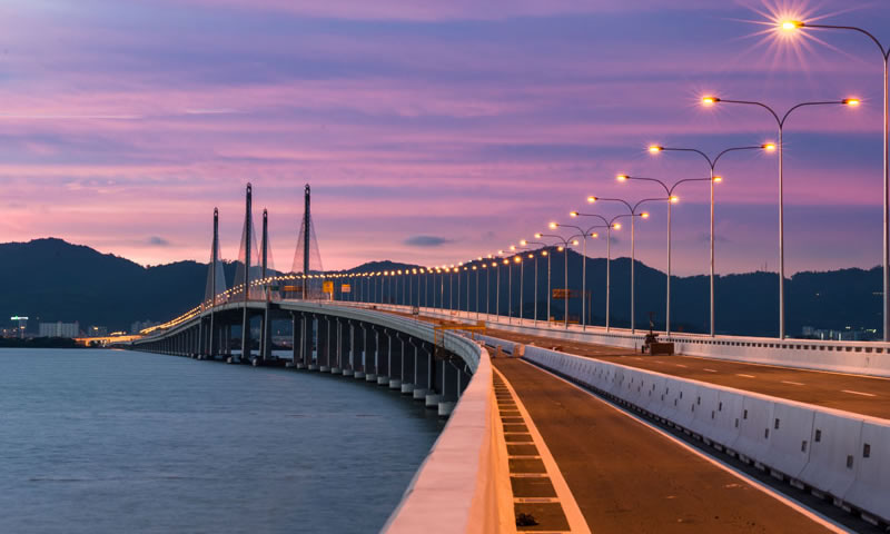 马来西亚槟城第二跨海大桥,,,,,全长22.5 公里,,,,,是迄今东南亚最长的跨海桥梁,,,,,也是马来西亚第九个五年妄想的优先生长项目。。。。。槟城二桥是公司承建的第一个外洋桥梁项目,,,,,全长8.05 公里。。。。。