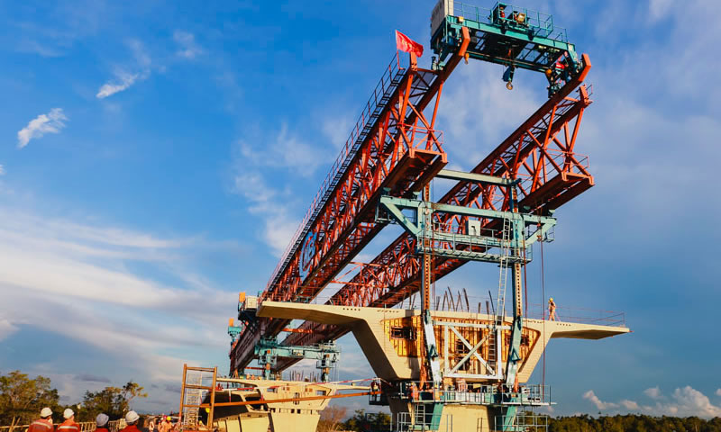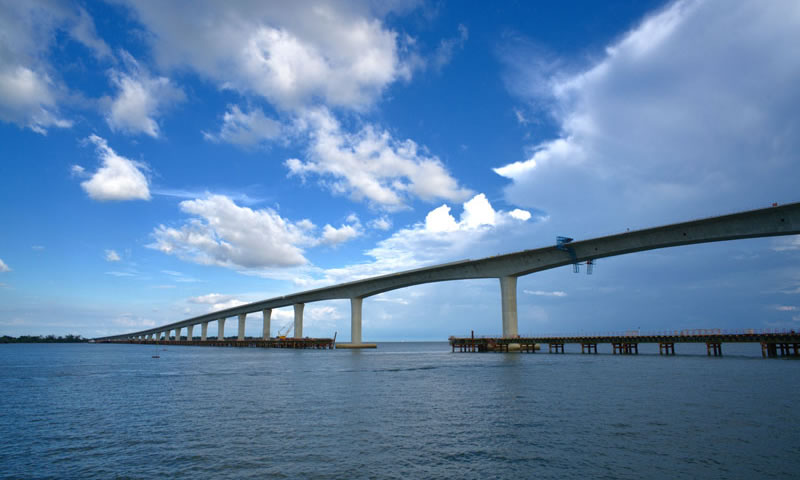 文莱大摩拉岛大桥全长5915米,,,,,,主桥为一连刚构桥,,,,,,引桥为节段预制拼装箱梁桥,,,,,,大桥建成后成为文莱首座跨海特大桥梁,,,,,,对推进文莱都会生长及大摩拉岛石油和自然气开发建设起着举足轻重的作用,,,,,,大摩拉岛离别了无桥梁毗连文莱大陆的历史。。。。。。。