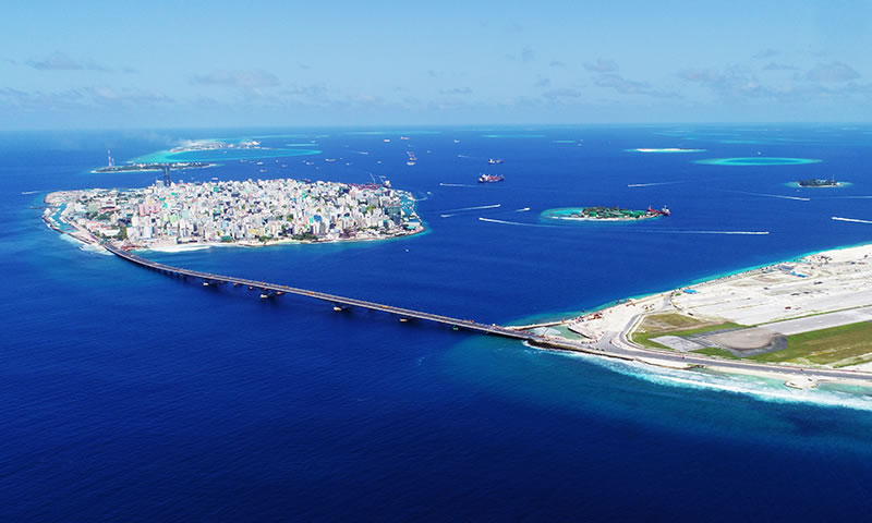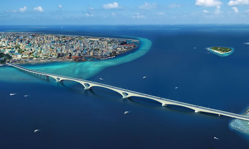 中马友谊大桥位于马尔代夫北马累环礁,,,,,跨越Gaadhoo Koa海峡,,,,,毗连马累岛、机场岛(胡鲁累岛)和胡鲁马累岛三个相邻岛屿,,,,,大桥全长 2.00km。。。。。。中马友谊大桥是2014年中国国家主席习近平对马尔代夫举行国是会见时代,,,,,双方向导人配合商定,,,,,由中国援助的大型基础设施工程,,,,,是马尔代夫政府和人民关注的民生工程,,,,,也是践行“一带一起”建议的重点工程。。。。。。