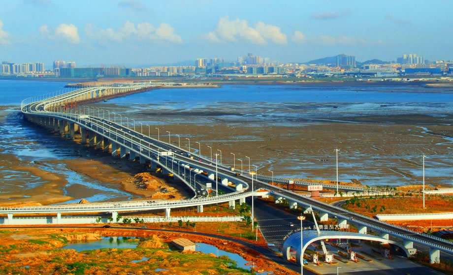 集美大桥是福建省厦门市毗连厦门岛与集美半岛的一座跨海大桥,,,,,是集美半岛环岛干蹊径的主要组成部分之一,,,,,位于厦门北海域之上。。。。。。。。集美大桥是厦门收支岛交通路网妄想中主要的跨海通道之一,,,,,是其时海内少见的集跨海桥梁、海底隧道、围海造地、环保综合开发于一体的综合性工程,,,,,主体项目包括都会蹊径桥梁与BRT通道两大部分。。。。。。。。工程全长8.438公里,,,,,其中海上桥梁3.82公里,,,,,隧道1.4公里。。。。。。。。BRT全长9.695公里。。。。。。。。集美大桥海上箱梁施工在中国海内首次接纳了“短线匹配法节段预制悬拼”工艺,,,,,施工规模天下第一,,,,,属中国海内首座大规模短线匹配预制悬拼跨海大桥。。。。。。。。