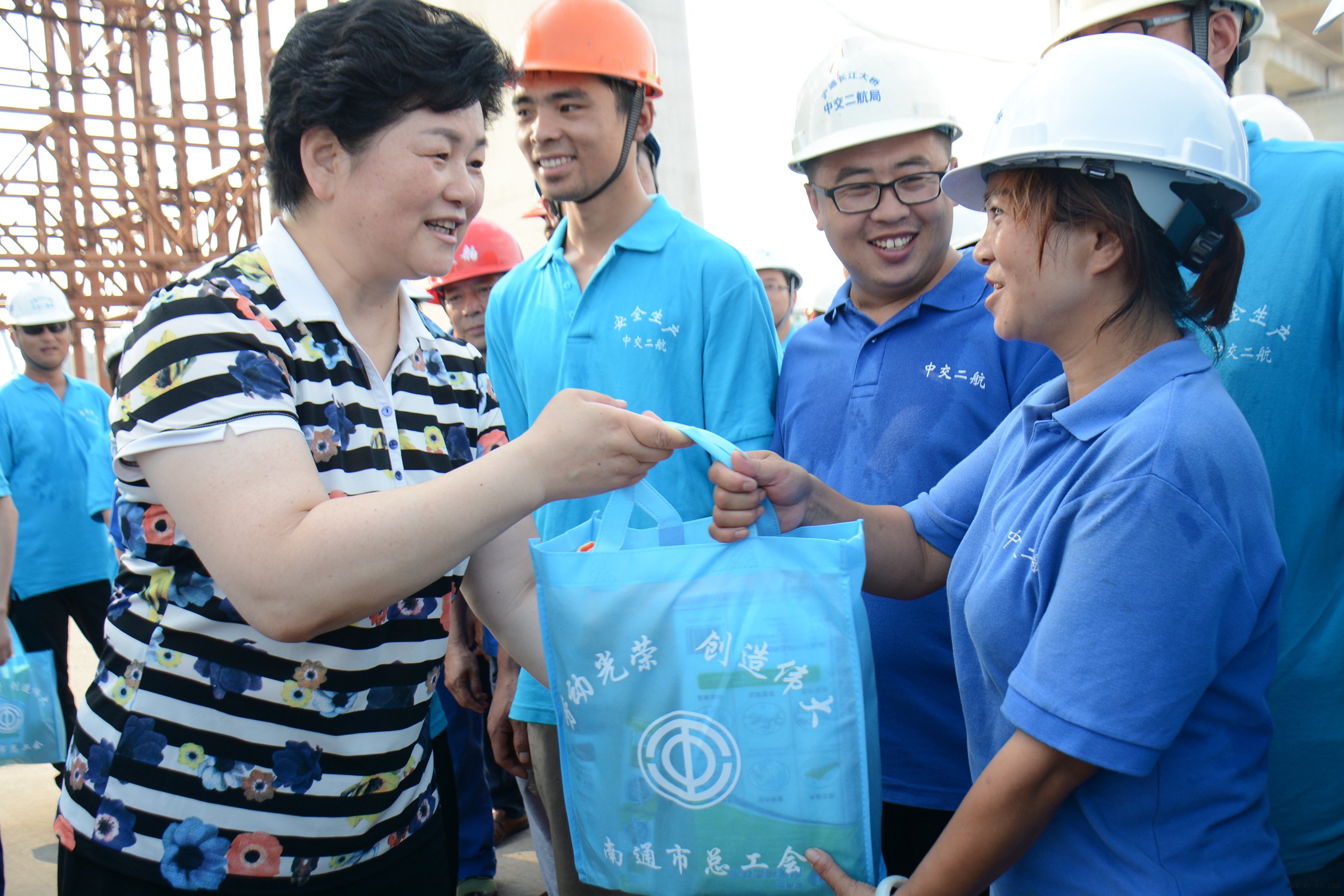 7月19日,, ,,,, ,,南通市委常委、组织部长、统战部长冯军,, ,,,, ,,市人大常委会副主任、总工会主席葛玉琴来到沪通大桥建设工地,, ,,,, ,,慰问坚守在高温一线的大桥建设者。。。。 。。