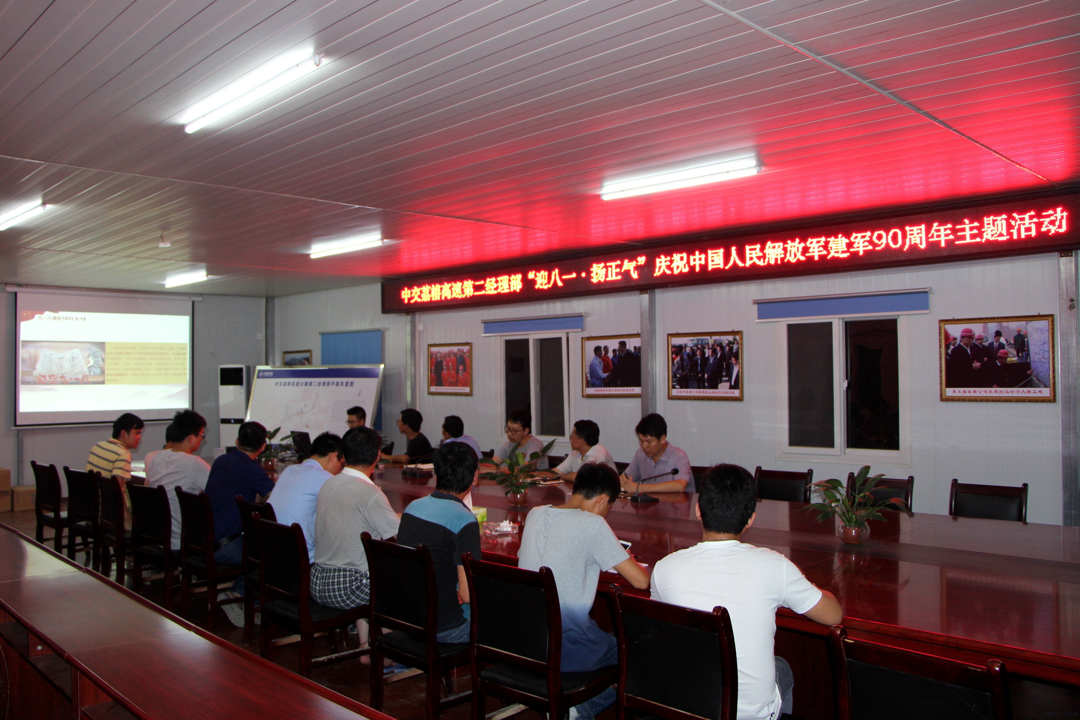本次运动中,,,,,,全体职员通过多媒体电子屏幕配合学习了人民军队这九十年的斗争历史,,,,,,并寓目了纪录片《军魂》。。。。。。随后,,,,,,项目部党员代表王涛对全体职员作出四点要求: