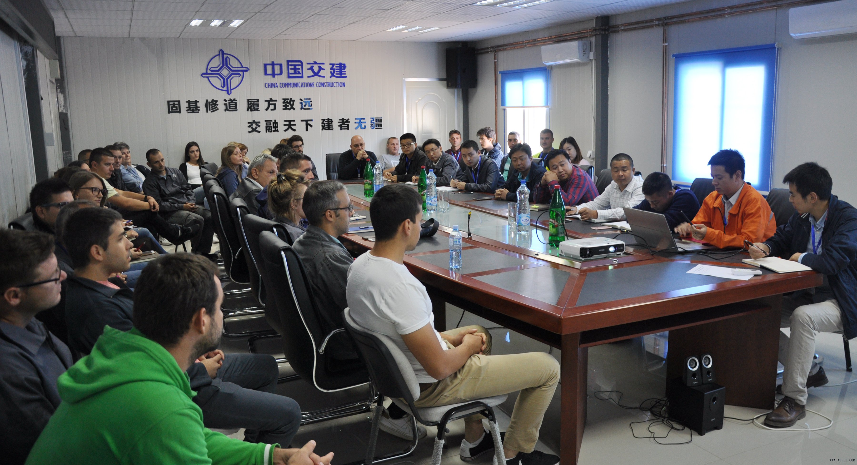 为进一步推动和落实外洋项目属地化建设,,,,,,,,塞尔维亚E763高速公路项目部于外地时间9月5日上午10点举行了首场外籍员工入职培训聚会。。。。。。项目全体向导班子和36名外籍员工加入培训,,,,,,,,聚会由项目副司理陶涛主持。。。。。。