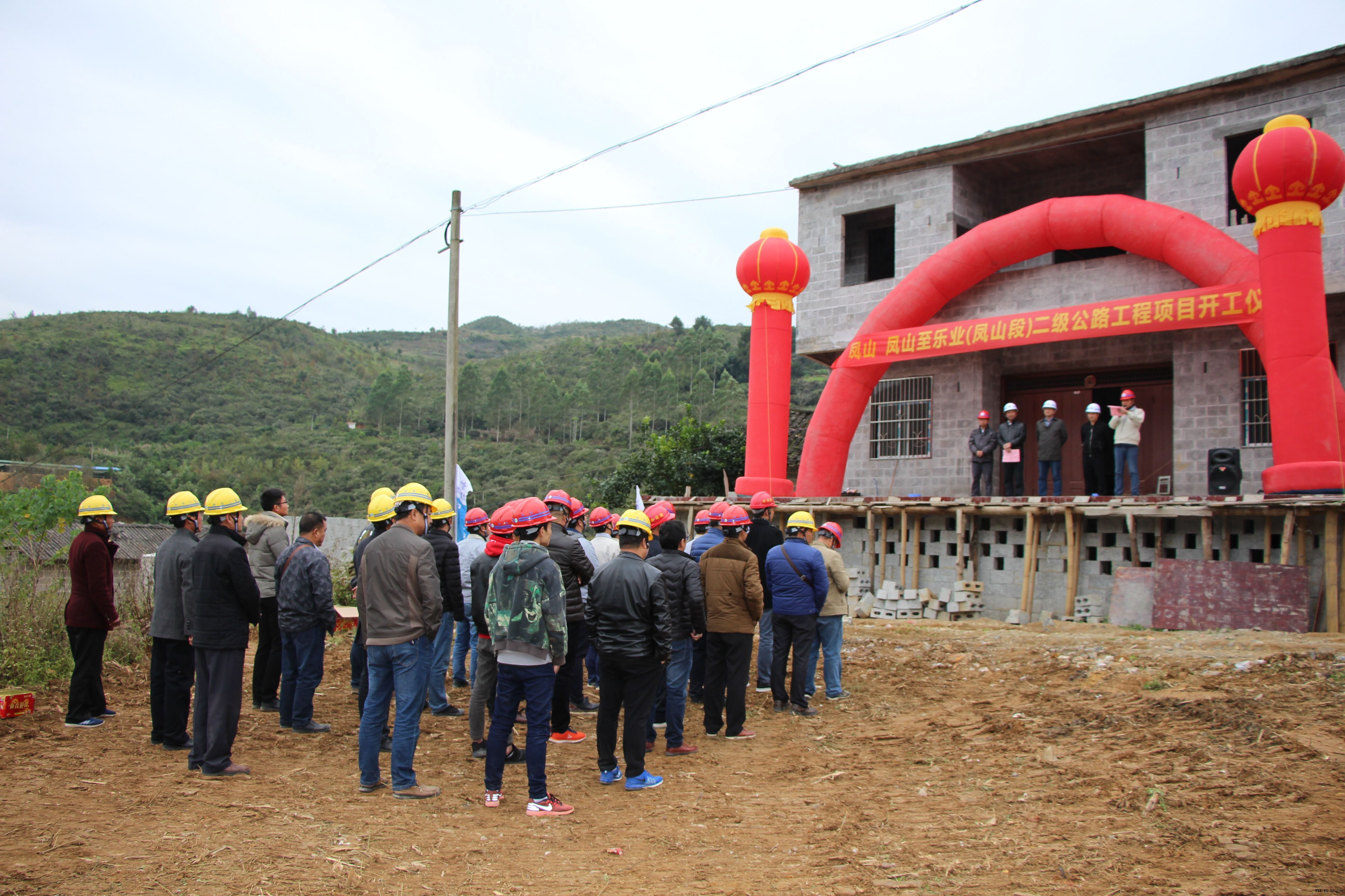 2017年11月23日上午,,,,,,,,在蜿蜓盘旋的山区蹊径间,,,,,,,,凤山至乐业(凤山段)二级公路举行项目开工仪式。。。。。凤山县人大主席、二级路副指挥长卢发强,,,,,,,,建设办主任罗登品等向导,,,,,,,,和项目主要认真人、项目部职工、外地群众加入开工仪式。。。。。