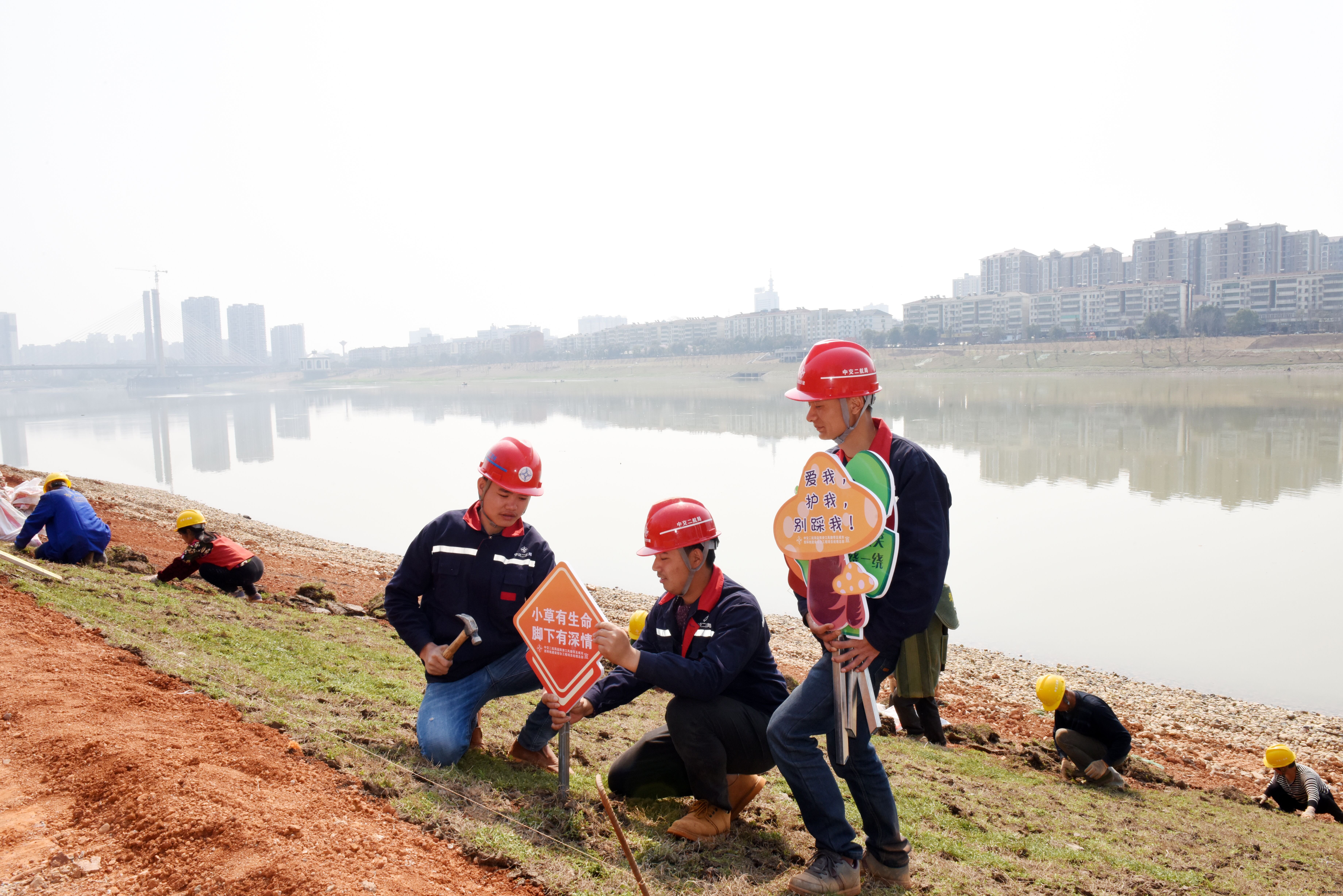 3月12日植树节,,,,,优德88官网网站二航局益阳资江风貌带施工职员在铺筑草皮的同时,,,,,插上护绿牌,,,,,表达配合守护“漂亮益阳、绿色家园”的心愿。。。。。。 。。