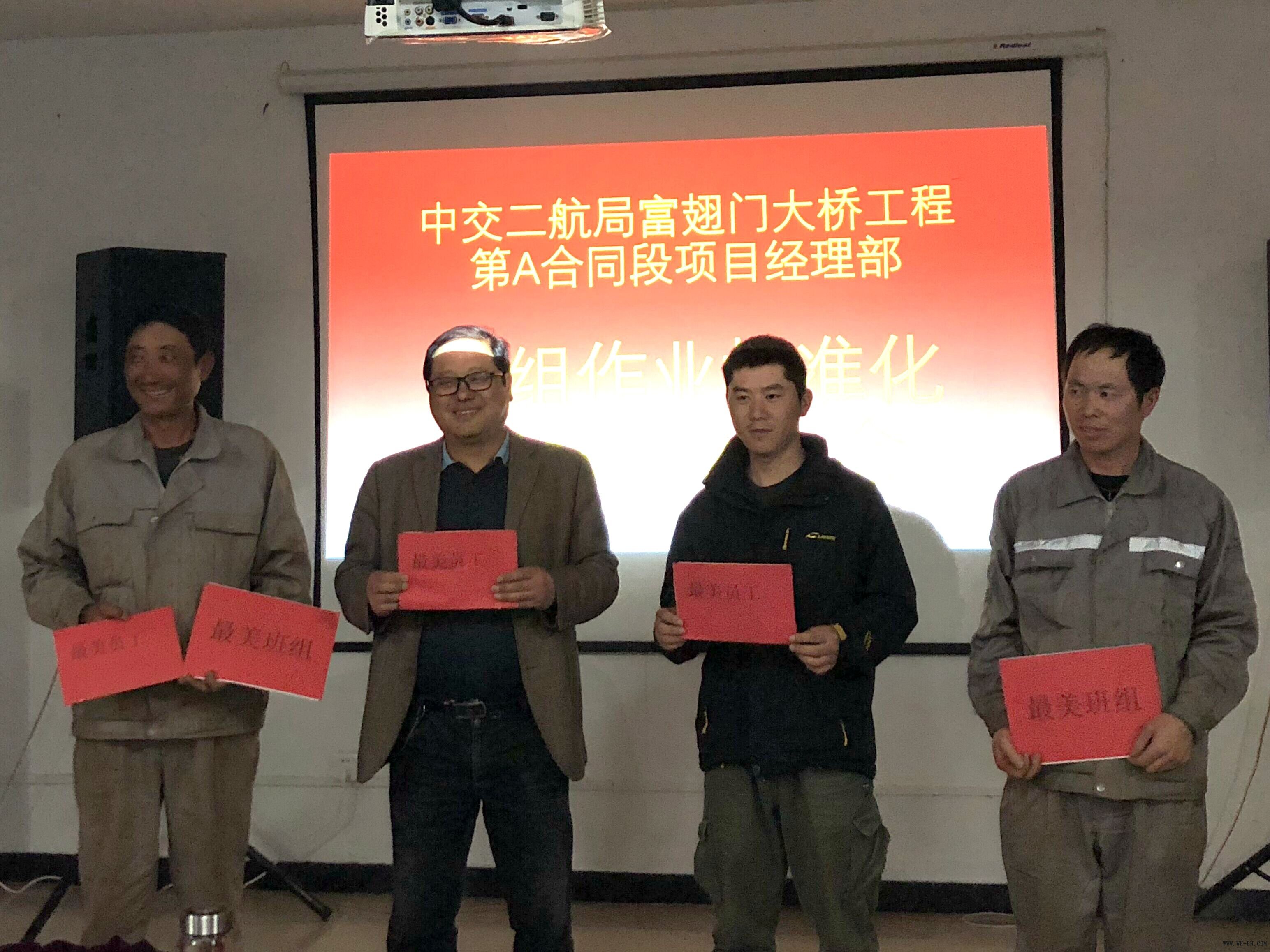 3月31日,,,,,,,,为起劲响应主通道工程建设指挥部立功竞赛运动,,,,,,,,进一步推动项目部班组作业标准化,,,,,,,,富翅门大桥项目部召开一季度班组作业标准化表扬仪式,,,,,,,,对体现优异的班组和小我私家举行了奖励。。。。。。