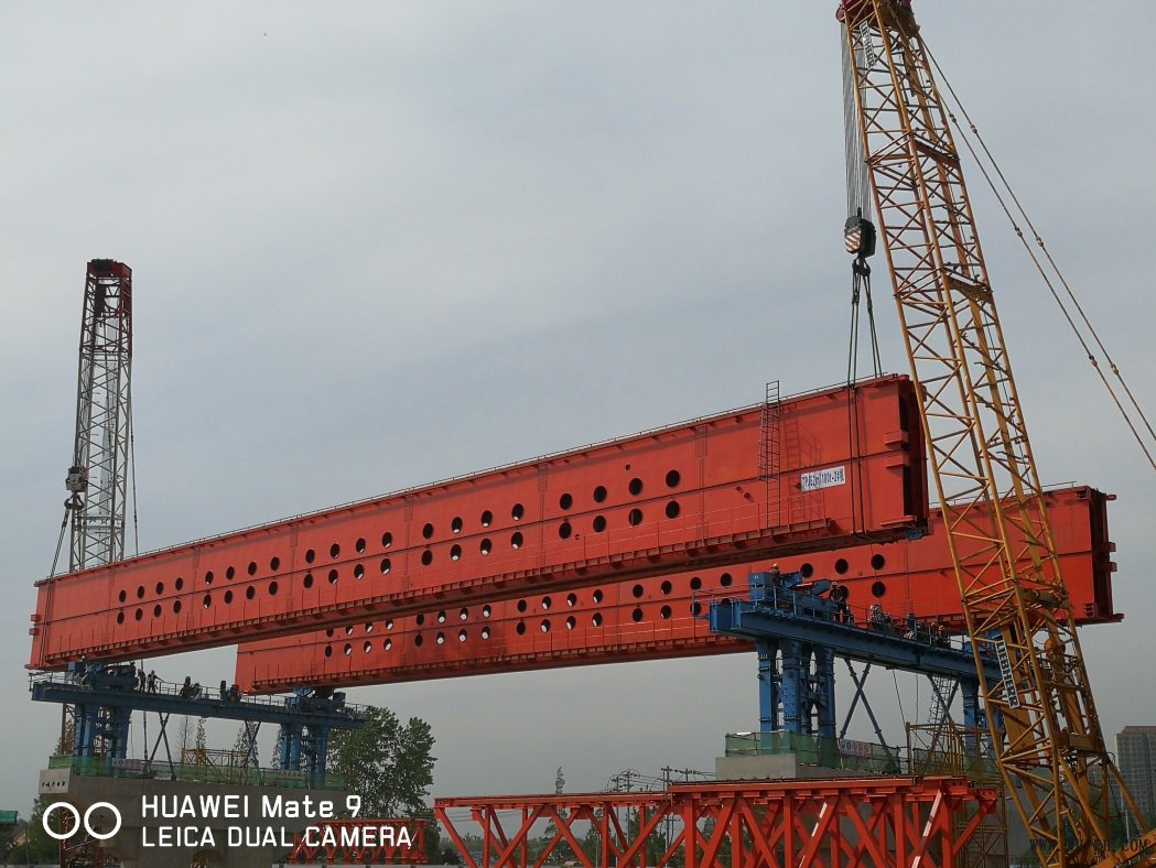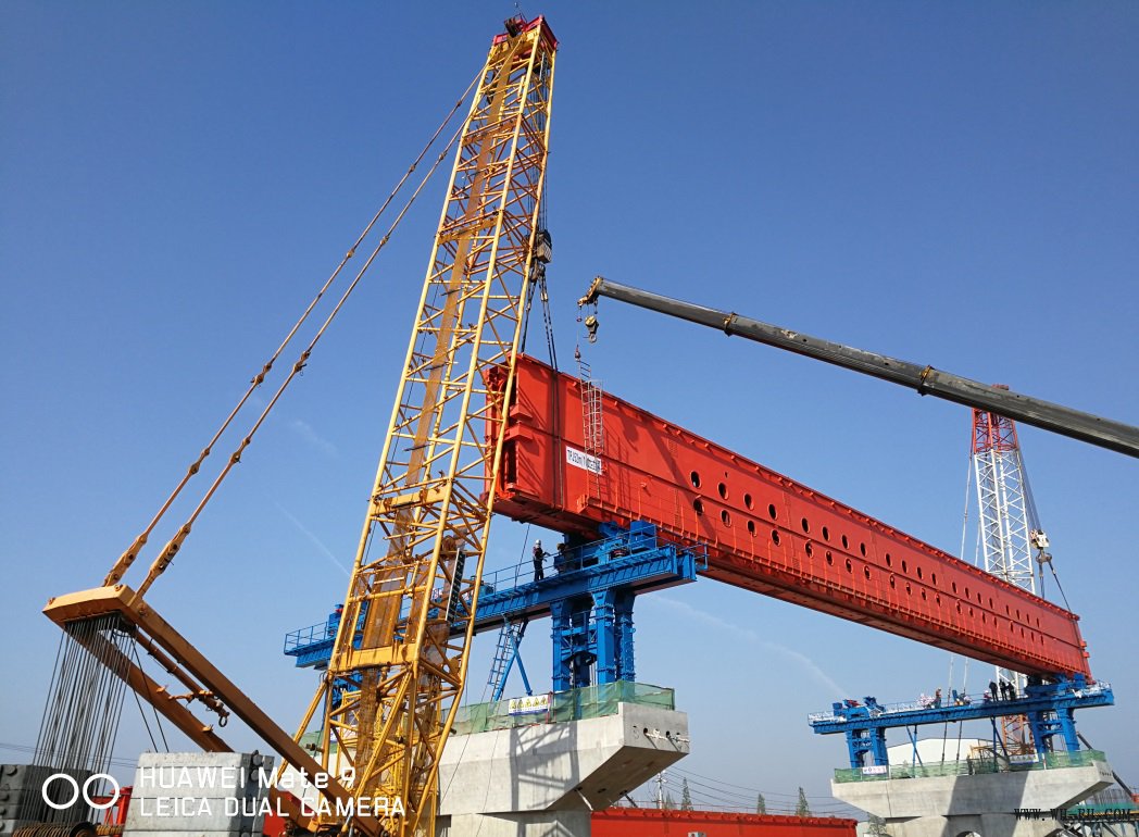 5月4日,,,,,南京五桥C1标南引桥工段两榀265吨重的TPJ-52单导梁节拼架桥机实现精准就位。。。。。 南京五桥C1标南北引桥选用的TPJ52架桥机是由原TPZ60桥机刷新,,,,,刷新后为上行式单主梁桥机,,,,,单幅桥机总长126.23米、总高16.2米、总重680吨,,,,,前后对称设计,,,,,知足52米/49米/42米/大跨径对称悬拼施工条件。。。。。此次为海内首次接纳单主梁桥机左右幅同步架设节段梁的工艺,,,,,相比以往的桥机,,,,,有诸多优点:1、较好的顺应左右两幅梁中心距的转变;;;;;2、自重相对较小,,,,,最洪流平的减小桥机对桥墩和节段梁的作用力;;;;;3、可左右双幅桥同步施工,,,,,最洪流平的减小桥墩偏载受力的影响;;;;;4、左右双幅同步施工,,,,,阻止泛起整机横移的工况,,,,,减小桥机操作危害,,,,,并节约施工工期、提高功效。。。。。 清早六点,,,,,项目部早早的站齐了步队,,,,,接受工程部长做吊装前的最后一次“清静质量手艺交底暨作业班前会教育”。。。。。“工艺流程和重点、种种危险源和控制步伐、职员分工和安排、起重作业统一的信号和口令、职员站位和周围清静警戒步伐”响亮的宣读和安排后,,,,,所有岗位的职员划分各就列位。。。。。随后,,,,,两台履带吊一起起勾,,,,,按计划一步步平稳得将这条红色的巨龙,,,,,缓慢地升上天空。。。。。 经由十几个小时奋战,,,,,黄昏,,,,,施工职员把两片主梁稳稳地牢靠到位,,,,,现场职员有的激动地喊着“青年节快乐”,,,,,尚有的作诗来庆祝——“巨吊举,,,,,大江舞、穿云驱雾。。。。。金陵江河平渡,,,,,天无语。。。。。拓天路,,,,,驱铁马、瑶池踏步。。。。。长空一消愁绪,,,,,怨飞去。。。。。”各人的兴奋、自豪溢于言表。。。。。 预计项目部与2018年9月将完成南引桥节段箱梁架设,,,,,2018年11月完成南北施工区域的架桥机拆装转换。。。。。