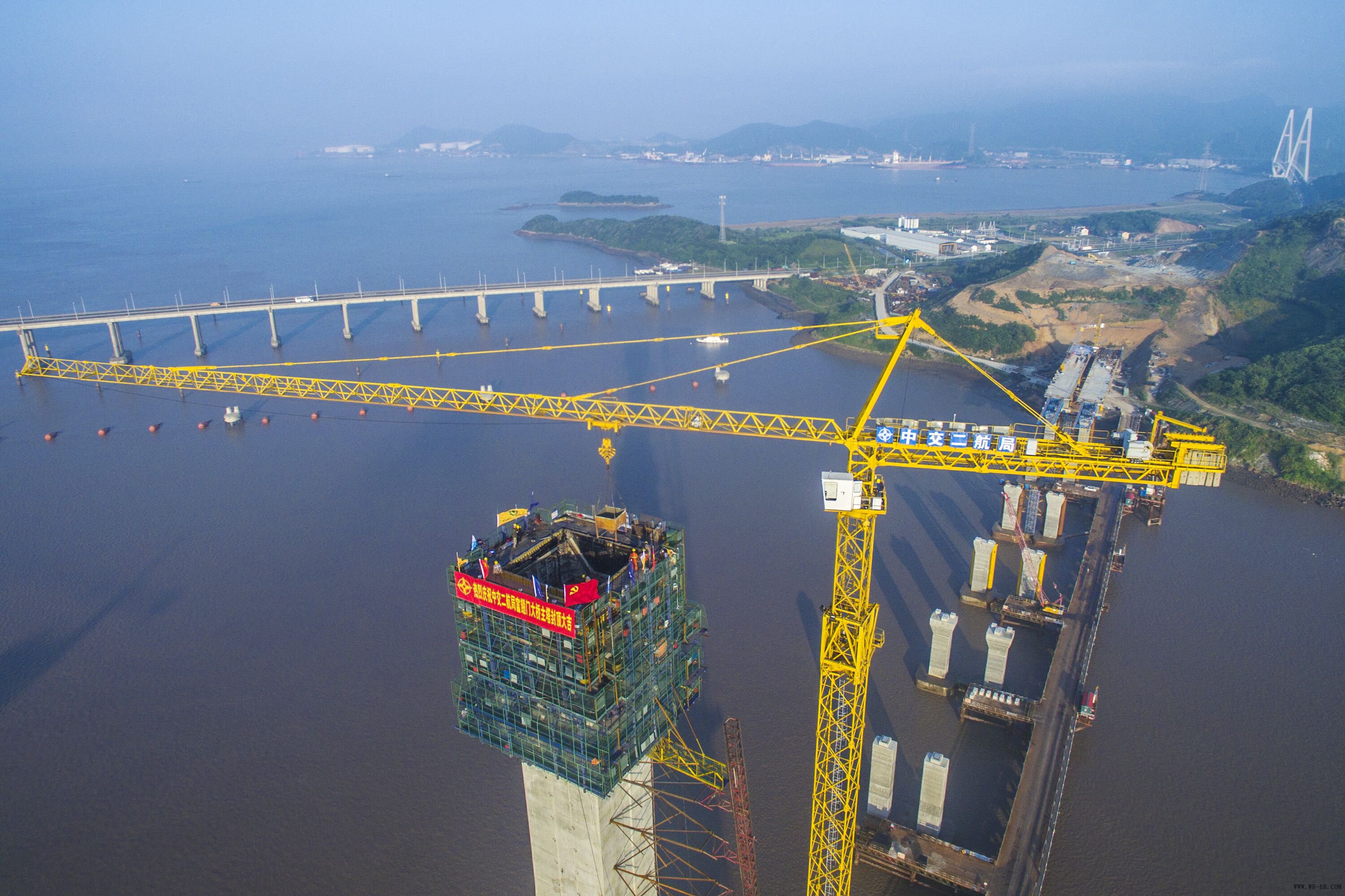 2018年5月16日,,,,,,,,由优德88官网网站二航局四公司承建的舟山市富翅门跨海大桥9号墩主塔率先完成封顶,,,,,,,,后续将转入斜拉索上锚固施工,,,,,,,,为大桥2019年意会涤讪了基础。。。。。。