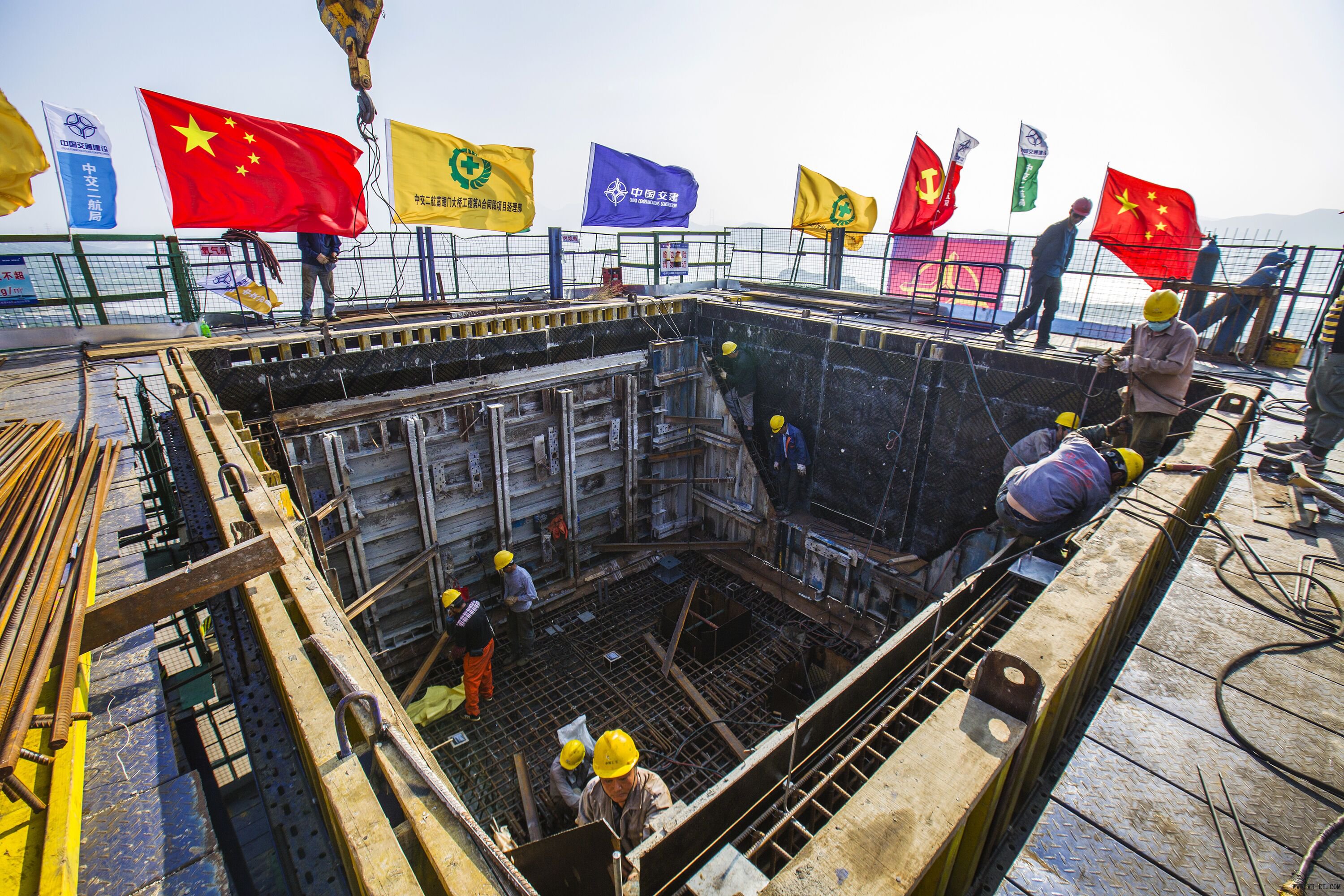 据相识,,,,,,,,怎样让大桥桩基在海中站稳“脚跟”,,,,,,,,也让大桥加入者们费了不少头脑。。。。。。由于富翅门大桥处于响礁门水道,,,,,,,,地质条件极其重大——基岩裸露、大斜坡、急流速,,,,,,,,面临这样的卑劣条件,,,,,,,,大桥通例施工工艺无法实验,,,,,,,,建设难度极大。。。。。。项目部起劲开展手艺攻关,,,,,,,,对沿海大桥施工手艺举行系统比选和研究,,,,,,,,团结大宗的盘算机模拟仿真盘算,,,,,,,,取得了优异的盘算数据和理论剖析效果。。。。。。同时,,,,,,,,团结响礁门水道的水文和地质特点,,,,,,,,提出了“悬臂、跟进、锚固”三步走的新型大桥桩基施工计划,,,,,,,,并在富翅门大桥乐成应用。。。。。。26根大型桩基础施工质量所有及格,,,,,,,,均为I类桩。。。。。。现在乐成申报了“浅笼罩层深水区流速大岩面倾斜的钢护筒施工装置”适用新型专利。。。。。。