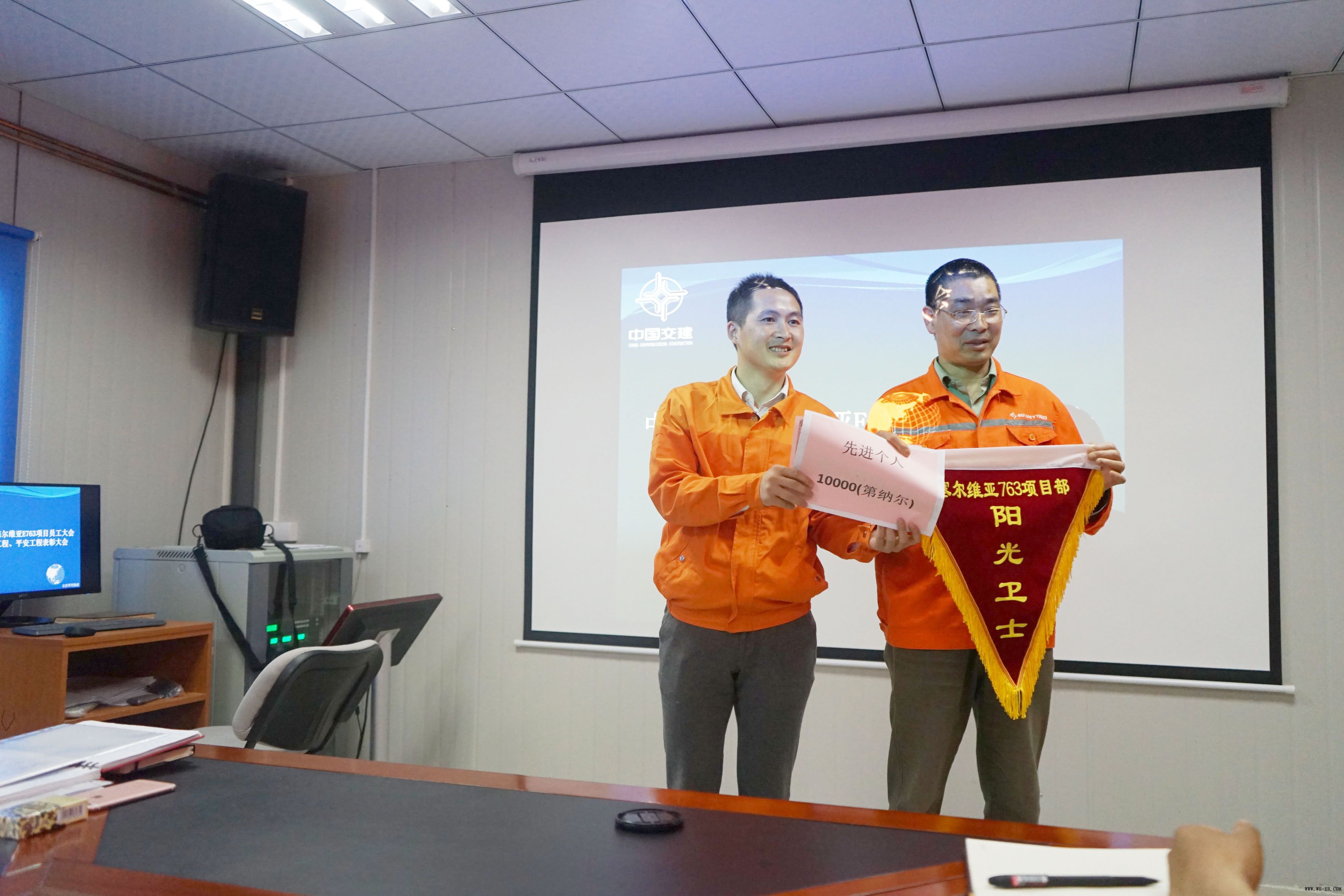 别的,,,,,,,在清静管理方面,,,,,,,项目部起劲响应每个作业面不凌驾9人的要求,,,,,,,因地制宜地聘用外地清静公司Alfa,,,,,,,推进经常性清静教育。。。。。。项目管理职员、班组长逐日班前巡查工地,,,,,,,对当天的生产使命、响应的清静步伐、需使用的工具状态做到胸有定见。。。。。。在相识工人的身体状态,,,,,,,催促工人规范衣着,,,,,,,接纳书面清静交底,,,,,,,安排逐日事情使命同时,,,,,,,管理职员要见告逐日事情可能遇到的危害,,,,,,,实时报告任何人的不清静行为或者装备的不清静状态。。。。。。逐日收工或换班前,,,,,,,作业现场都会举行整理和整齐事情。。。。。。项目部还将“清静”事情与清静专项基金奖励政策团结,,,,,,,2018年度共奖励131人次,,,,,,,落实资金48万第纳尔,,,,,,,以“真金白银”的奖励机制,,,,,,,促清静生产。。。。。。