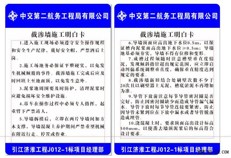 优异的起源是乐成的一半。。。。。。。。为确保截渗墙首件施工历程清静有序,,,,,,,,项目部全心组织,,,,,,,,合理安排。。。。。。。。施工前实时体例截渗墙首件工程计划,,,,,,,,计划审批后连忙召开手艺交底会。。。。。。。。施工中从最初的标高丈量、园地平整、导墙基坑开挖,,,,,,,,到砼浇筑、拆模和养护,,,,,,,,每个环节都严酷把关。。。。。。。。项目部在施工的同时一直地总结,,,,,,,,把难点、要点、要害点制成“明确卡”警示一线工人。。。。。。。。截渗墙首件工程的乐成,,,,,,,,为后续大面积施事情业做好了富足准备。。。。。。。。