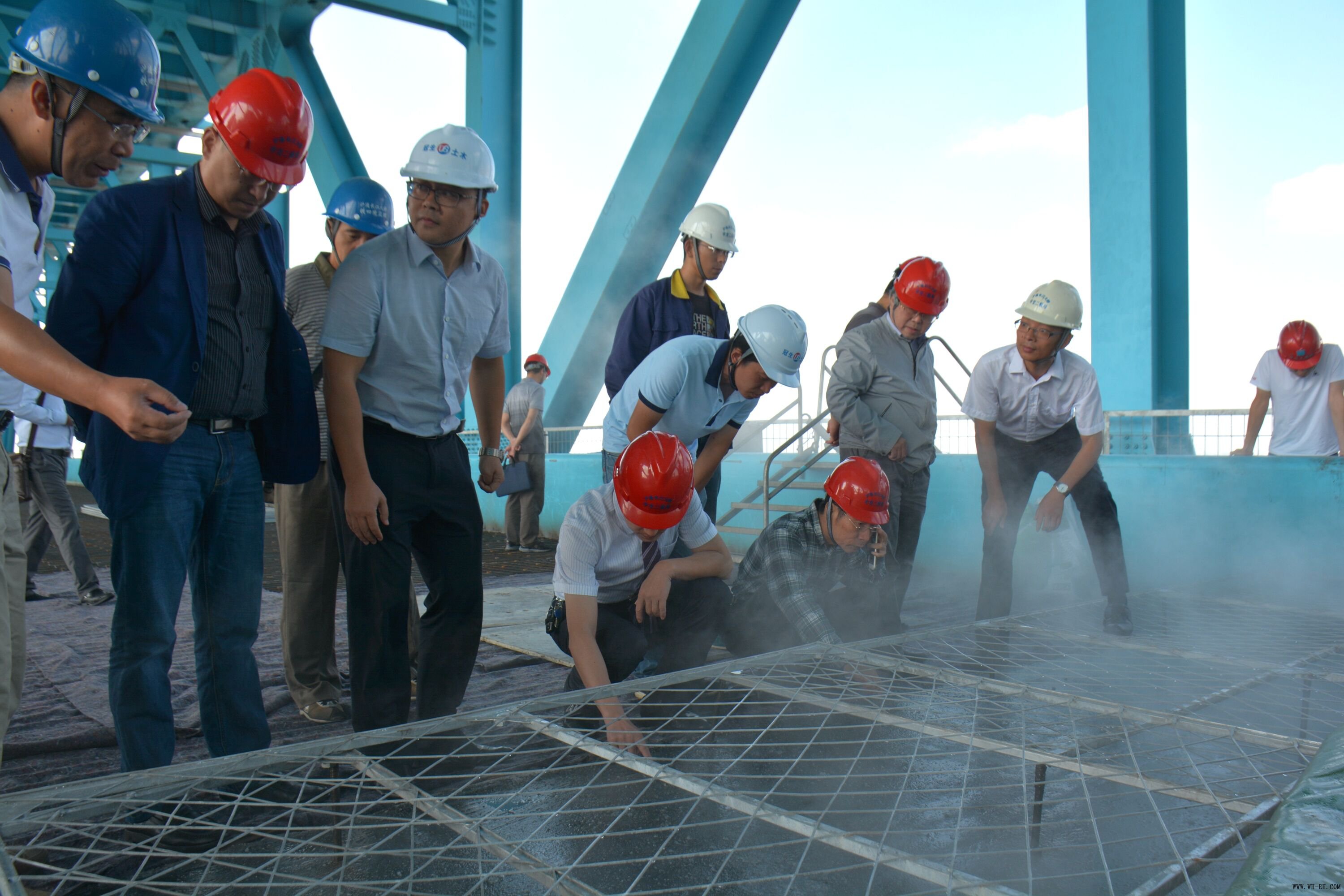 评审会约请了广东省公路学会理事长陈冠雄、湖南大学教授黄政宇、湖南路桥教授级高工欧阳钢、中铁大桥院教授级高工徐伟等业内着名专家。。。。。。陈冠雄任评审会专家组组长。。。。。。与会专家检查了钢桥面UHPC铺装施工现场,,,,,,在查阅相关资料的同时,,,,,,听取了优德88官网网站二航局试验段总结汇报,,,,,,经由认真地谈论质询,,,,,,最终给出了UHPC铺装施工计划及试验段施工工艺合理可行,,,,,,赞成通过评审的总体意见。。。。。。别的,,,,,,专家们还为后续施工提出了越发严谨规范的改善建议。。。。。。