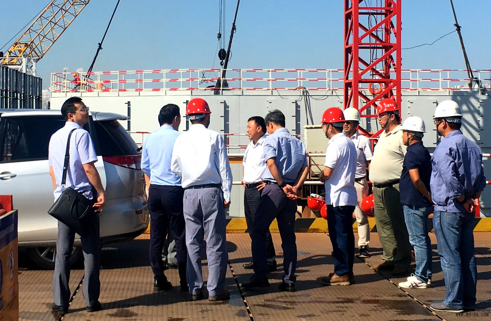 在9月29日已顺遂完成的浦仪大桥18#主墩钢套箱沉放施工平台上 , ,,,,,,邢市长等向导在展板前 , ,,,,,,认真听取了公建中心总工程师章登精汇报工程建设希望情形 , ,,,,,,并近距离的来到主墩钢套箱前 , ,,,,,,询问了施工历程中的问题 , ,,,,,,对二航局在短时间内进入周全施工状态 , ,,,,,,并提前完成主墩节点目的体现知足。。。。。临行前邢副市长与公建中心主要向导、以及施工方职工亲热握手作别。。。。。