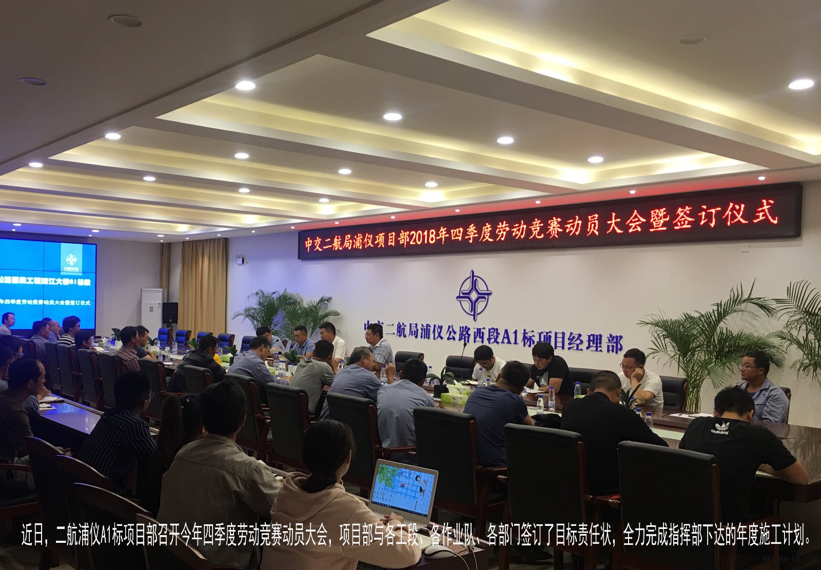 10月3日下昼,,,,,,, ,公司浦仪项目部在聚会室,,,,,,, ,举行了2018年四序度劳动竞赛暨协议签署发动大会,,,,,,, ,以“解放头脑勇猛争先,,,,,,, ,决战决胜第四序度”为主题。 。。。。。 。