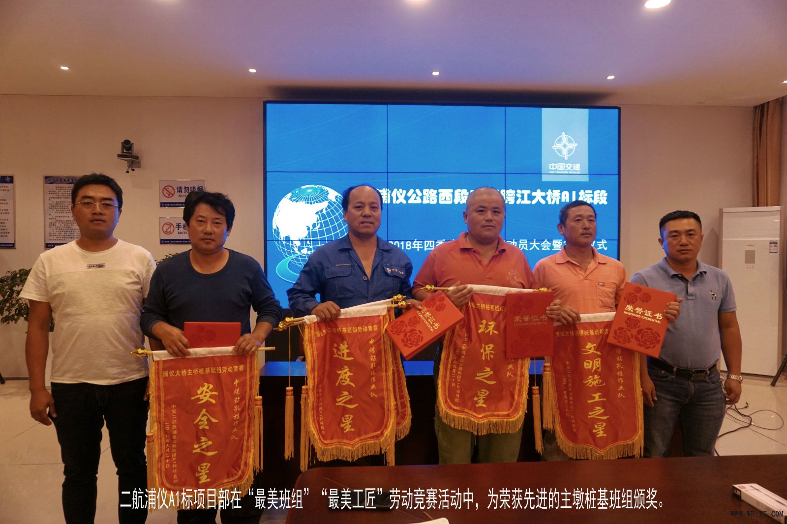 发动大会上,,,,,,, ,宣读了《关于主桥桩基施工劳动竞赛考评效果的转达》,,,,,,, ,对中煤特殊凿井有限责任公司的1号钻机班组获得竞赛“进度之星”“质量之星”、2号钻机班组获得竞赛“清静之星”、3号钻机班组获得竞赛“环保之星”、5号钻机班组获得竞赛“文明施工之星”揭晓了声誉证书和锦旗。 。。。。。 。