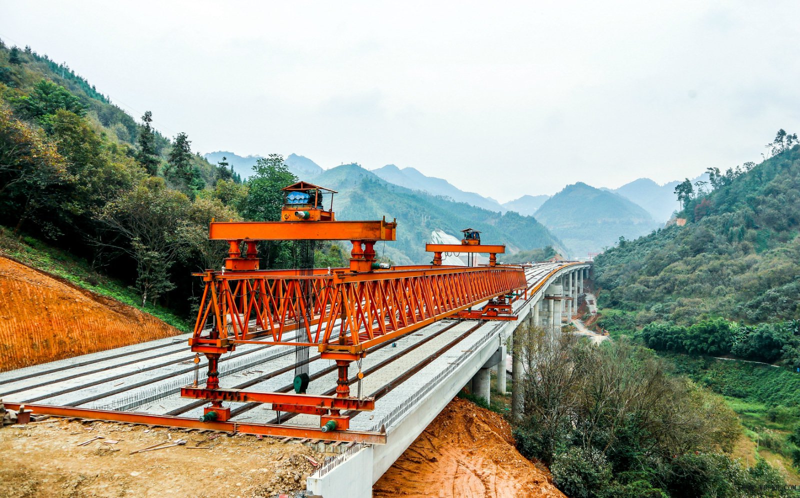 周福2号大桥设计接纳门式墩形式跨越国道,,,,,在确保清静施工的同时又要包管交通,,,,,是本桥施工的重难点之一。。。。。项目部多方论证,,,,,精诚合作,,,,,完成了架梁使命。。。。。这是项目开工至今第一次真正意义上的“收获”,,,,,这给予了驻守在偏远山区艰辛斗争的乐百4标建设者们以极大的信心。。。。。