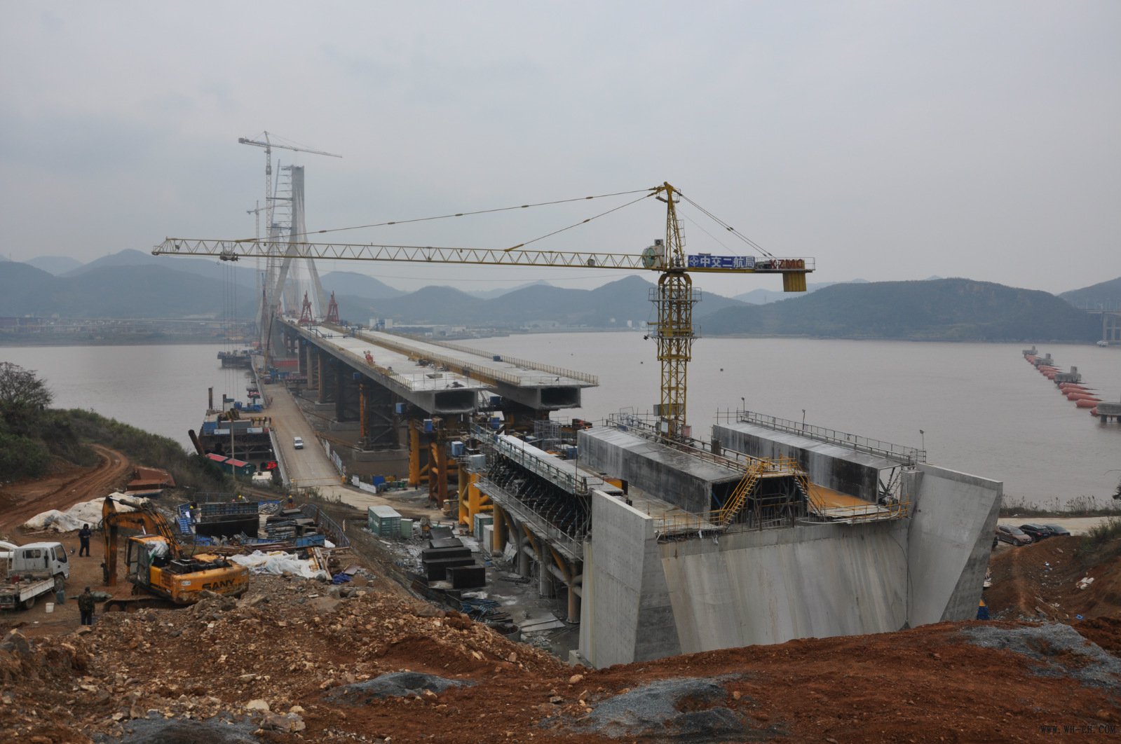 引桥接纳的是仿生学活动式顶推施工工艺。。。。。。顶推分为左右幅,,,,,,,,单幅总质量9242.51吨,,,,,,,,跨度达330米长。。。。。。云云大跨度深海域超重混凝土活动式顶推在海内施工尚属首次。。。。。。