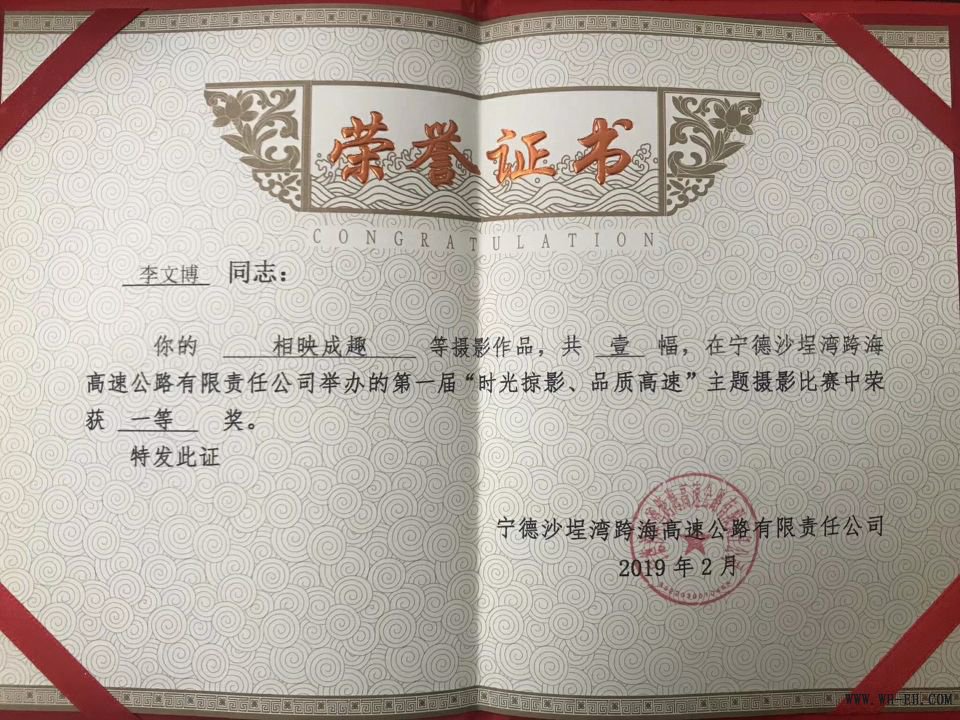 经宁德市摄影家协会专家评审,,,,,,,,有58幅作品分获种种奖项。。。。。沙埕湾A3标项目部共有9幅作品获奖,,,,,,,,其中,,,,,,,,李文博拍摄的《相映成趣》作品获得了专家评审的青睐,,,,,,,,获得赛事的唯逐一个一等奖。。。。。