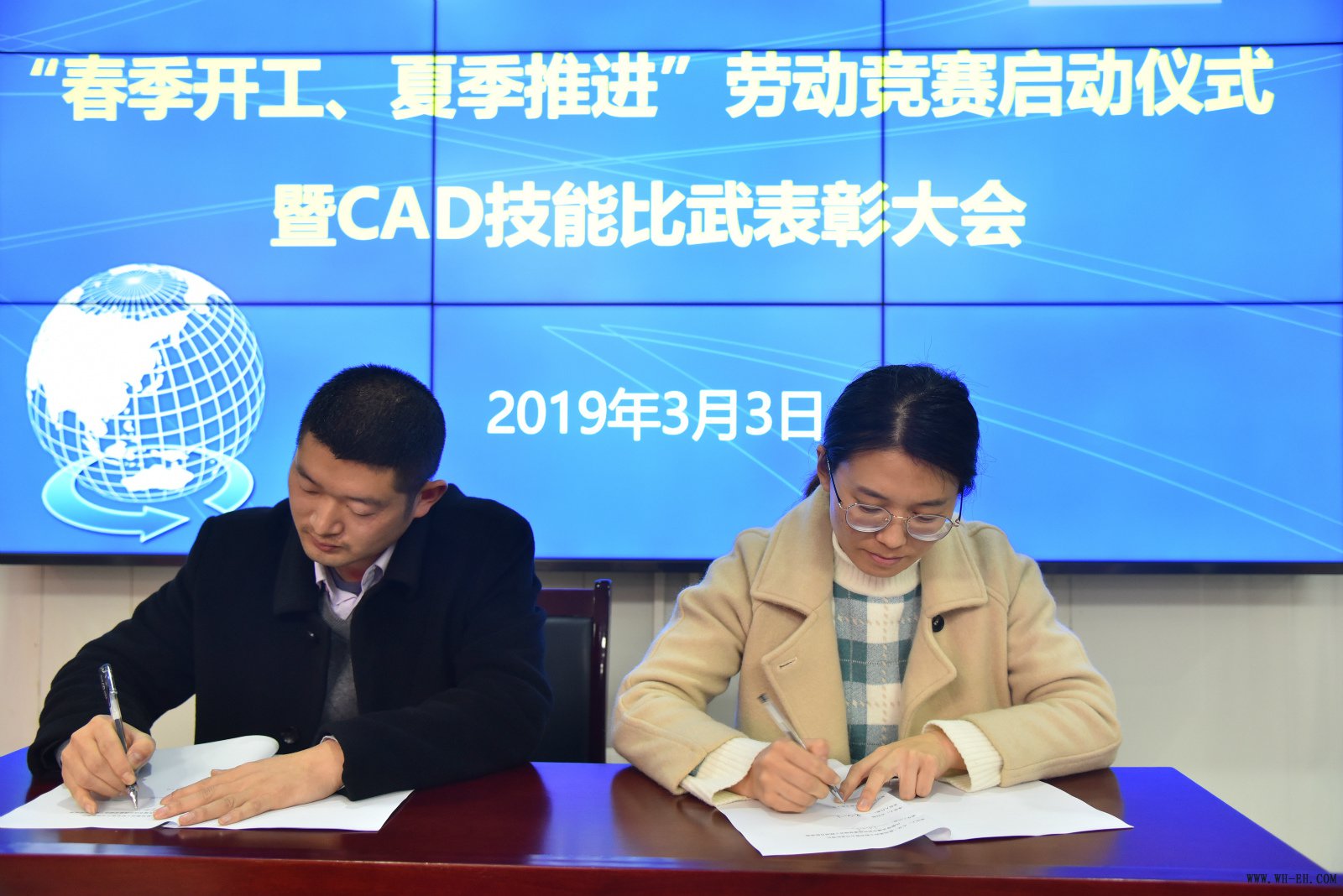 “我们迎来了新一年劳动竞赛的招呼,,,,,,,,项目部也掀起了以‘春季开工、夏日推进’为主题的新一轮生产热潮,,,,,,,,我代表工程部在此讲话亮相,,,,,,,,我们将严酷凭证设计及施工规范认真组织施工……”各部室代表及分包单位认真人在会上郑重亮相讲话,,,,,,,,并现场签署劳动竞赛责任状。。。。。。
