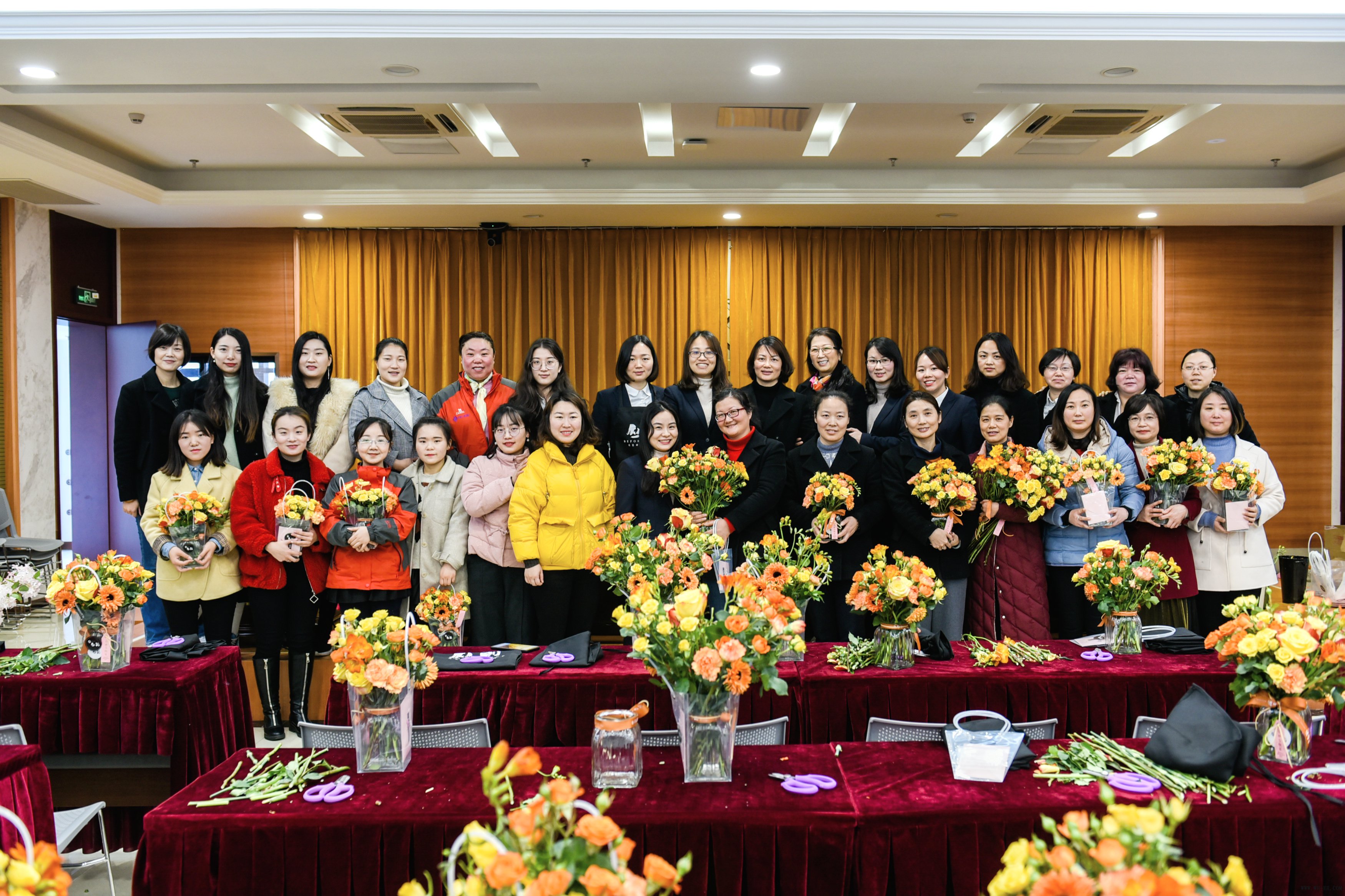 听完先生的先容,,,,,,女职工们都迫缺乏待地着手实验,,,,,,有的先挑选起自己喜欢的花材,,,,,,有的若有所思似在思索何种搭配最为养眼,,,,,,有的相互之间交流起来。。。。。。。。在芳香的天下里,,,,,,各人用自己的双手描绘心中的春天,,,,,,一束又一束……