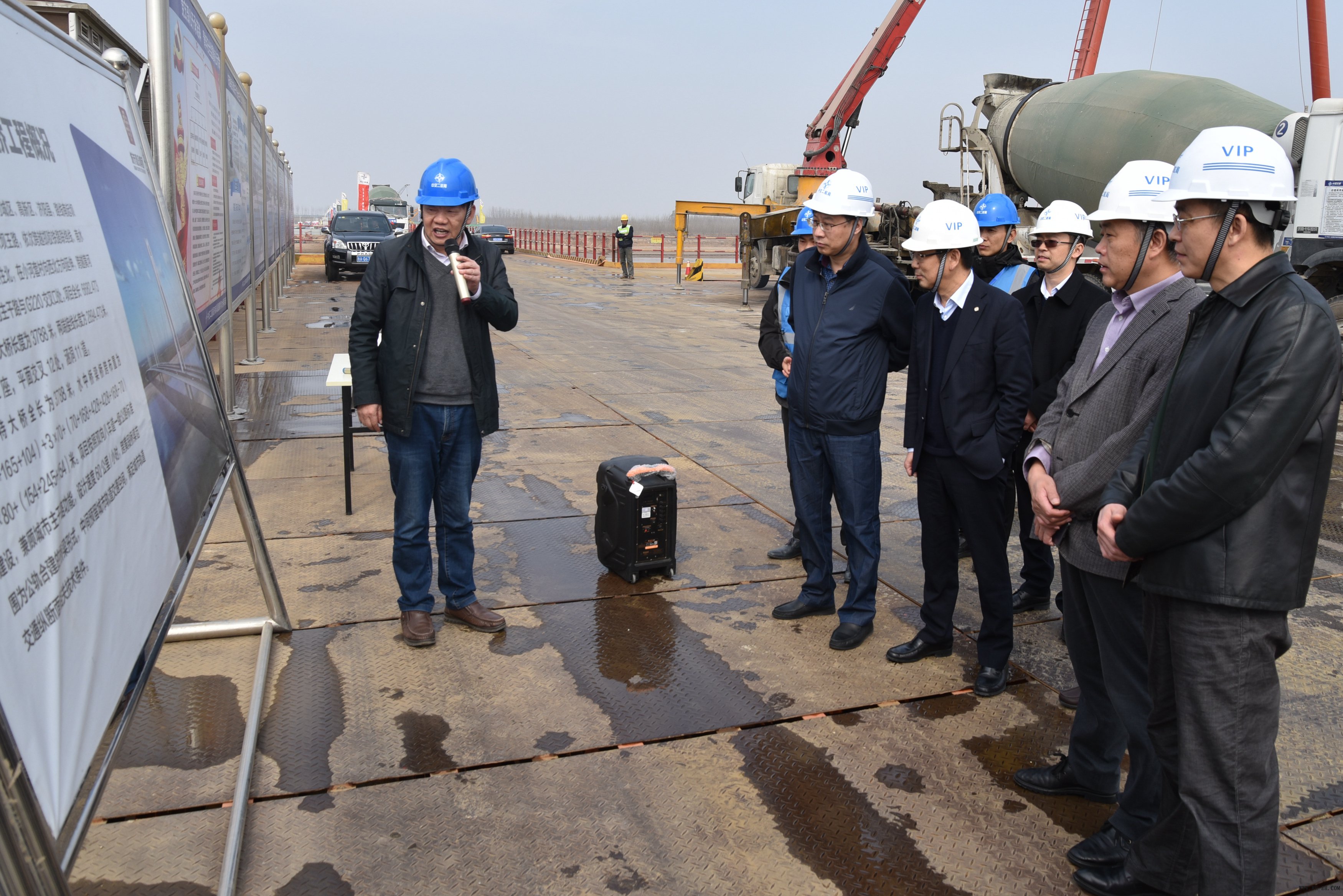 3月9日,,,,,公司党委书记、董事长秦体抵达济南凤凰路黄河大桥项目部检查指导事情,,,,,并同二航局华东分公司总司理罗仕等人会见了前来项目部调研旅行的山东建邦控股集团总裁张伟一行。。。。。
