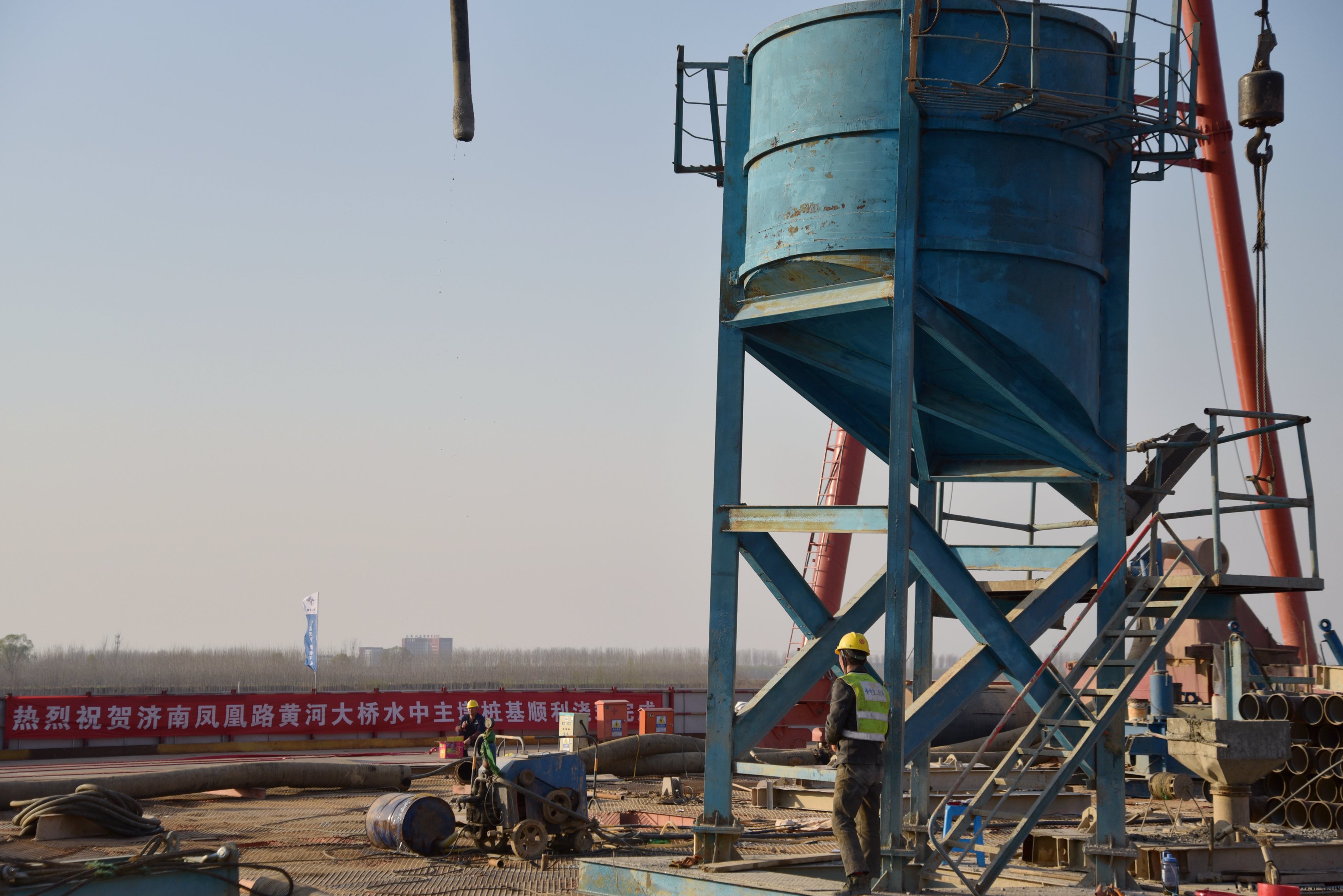 3月16日,,,,,,,,济南凤凰路黄河大桥24号水中主墩所有钻孔桩顺遂完成浇筑。。。。。