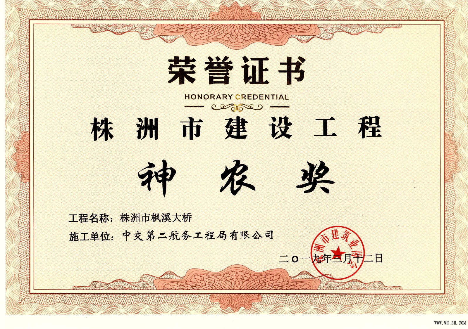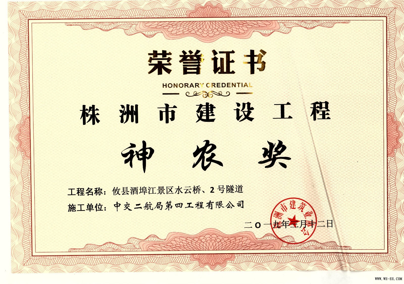 克日,,,,,,,,株洲市住建局宣布了关于2017-2018年度《株洲市建设工程神农奖》名单,,,,,,,,由公司承建的株洲枫溪大桥、攸县酒埠江景区水云桥及2号隧道工程项目喜获该项声誉。。。。。。。。
