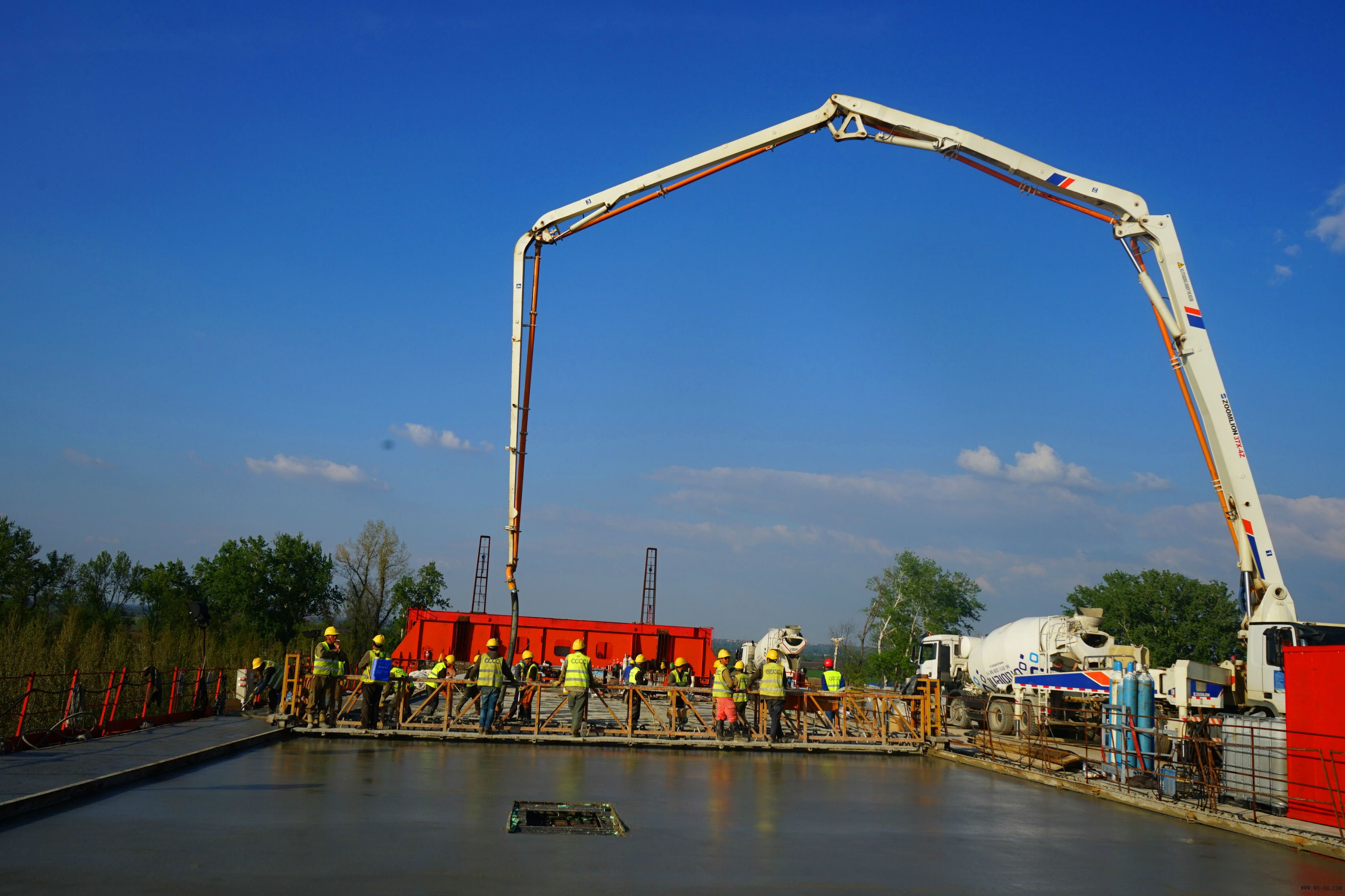 据现场施工认真人先容,,,,,,,本次浇筑历时10.5个小时,,,,,,,共需425方混凝土。。。。。。。。