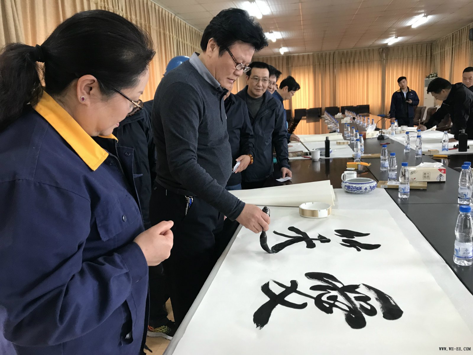 展厅里丹墨飘香,,,,,,,熙熙攘攘,,,,,,,宽大职工排着队围绕在几位字画巨匠周围。。。。。。中国铁路文联副主席、秘书长李强等着名字画家们挥毫泼墨、各展风范,,,,,,,现场创作出作品百余幅。。。。。。艺术家们引春色,,,,,,,入画里,,,,,,,写意潇洒,,,,,,,工笔规则,,,,,,,种种花鸟人物跃然纸上,,,,,,,书法作品更是笔酣墨饱,,,,,,,刚柔并济,,,,,,,职工在一旁忙不迭地铺纸,,,,,,,磨墨,,,,,,,现场气氛无比热烈。。。。。。