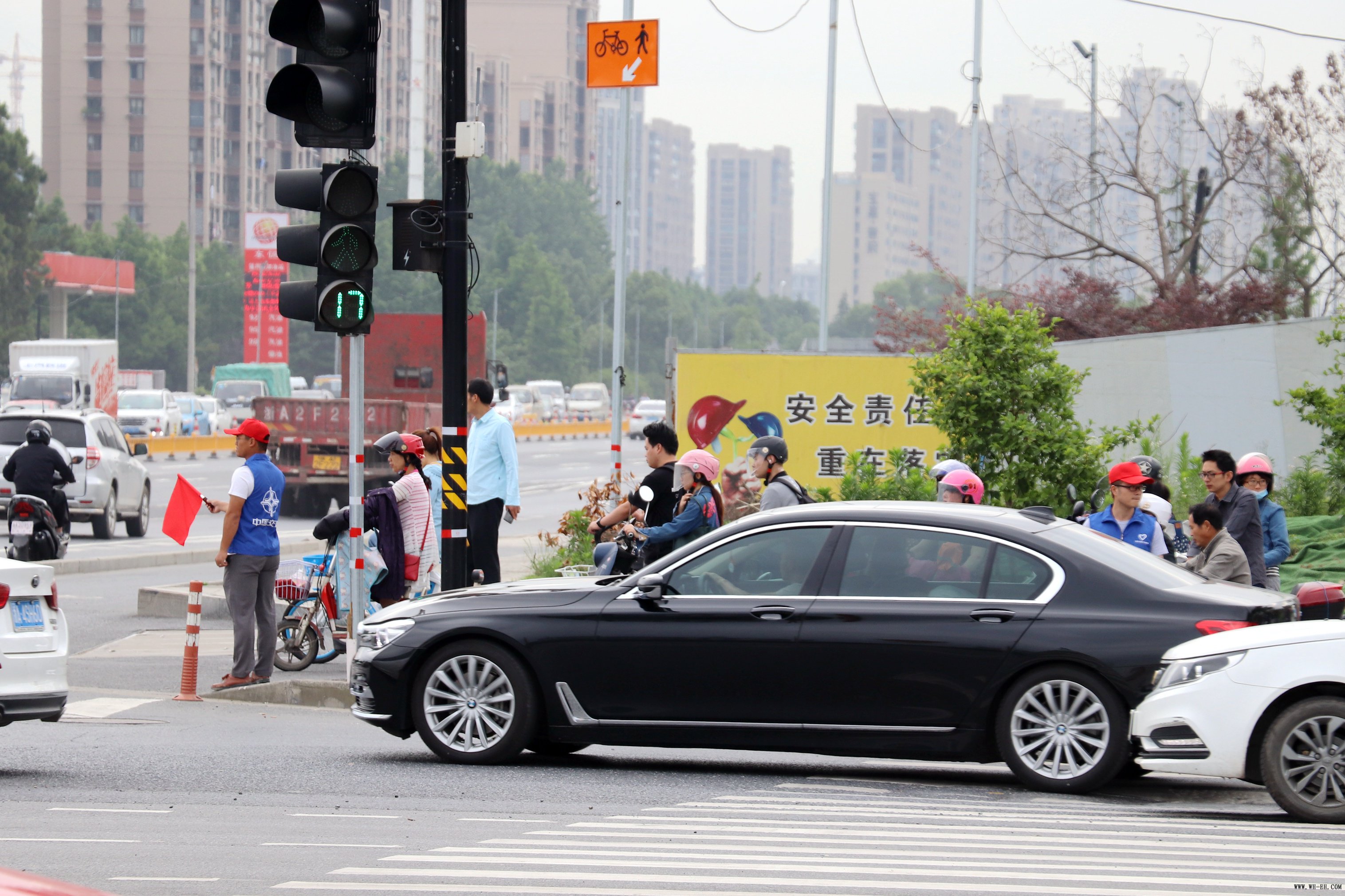 “请不要着急,,,,,,,,清静第一,,,,,,,,等绿灯亮了在走……”“电瓶车请走非无邪车道”在杭州市石祥西路与花蒋路交汇处的四个路口,,,,,,,,身穿蓝马甲头戴小红帽的自愿者排列蹊径两侧,,,,,,,,于斑马线处疏导交通。。。。。每当红灯亮起,,,,,,,,他们就会举起手中的小红旗,,,,,,,,示意行人、电动车止步。。。。。