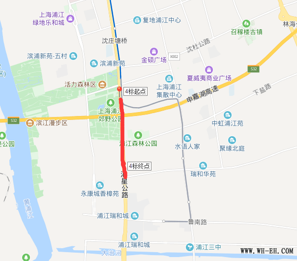 浦新公路位于上海市闵行区、奉贤区,,,,,,北起外环线,,,,,,沿黄浦江及金汇港东侧南行,,,,,,经三林、浦江、金汇、灼烁、钱桥、奉新等镇,,,,,,止于杭州湾畔金汇塘东路,,,,,,全长约35千米。。。。 。本次工程实验规模北起中心河桥南桥坡,,,,,,南至闸航路。。。。 。蹊径品级为一级公路,,,,,,设计时速为80公里,,,,,,全线均沥青混凝土路面。。。。 。
