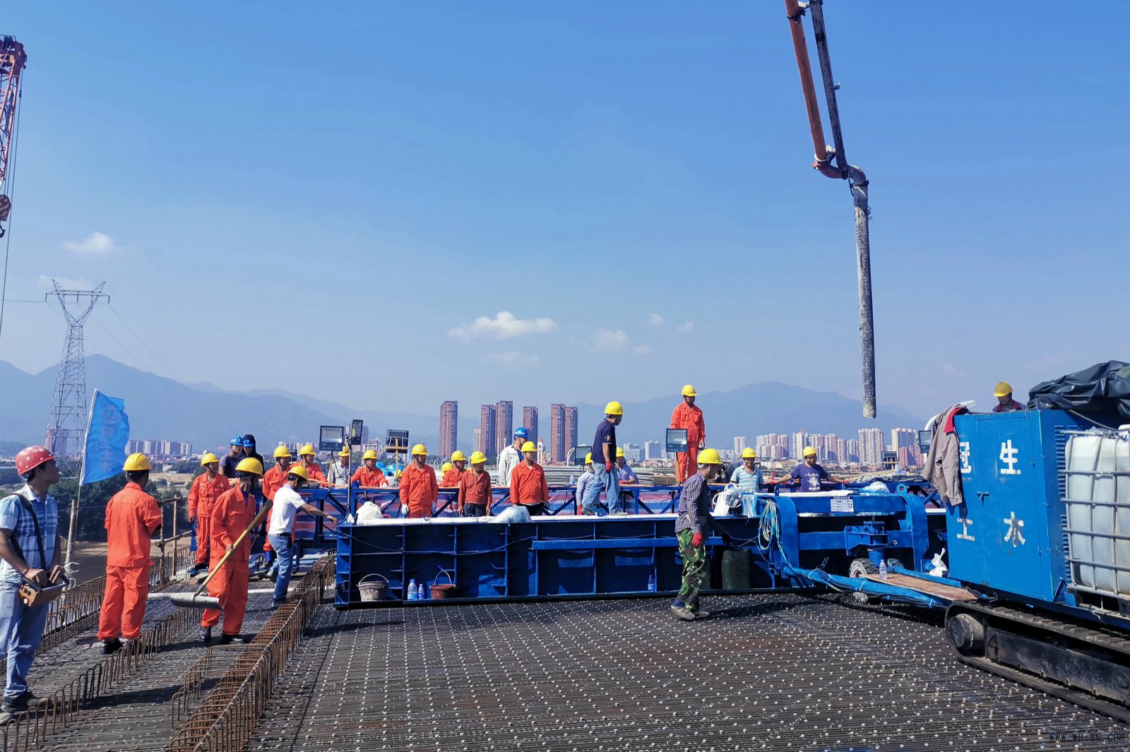 10月19日,,,,,,,由公司承建的福州洪塘大桥拓宽改建工程主桥桥面超高强韧性砼完成首次200米混凝土摊铺。 。。。。。