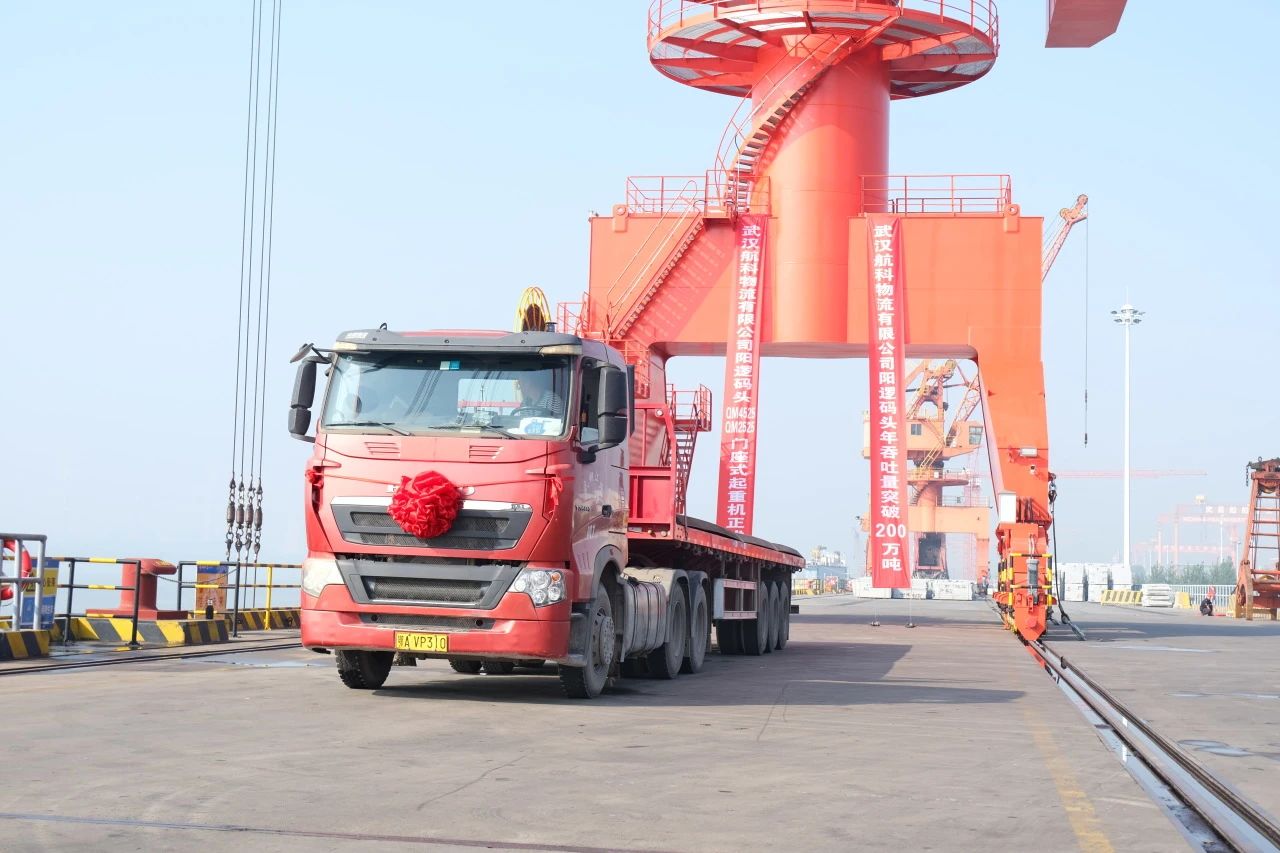 阳逻工业园事业部举行门座式起重机新机启动暨码头吞吐量突破200万吨庆典仪式