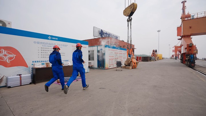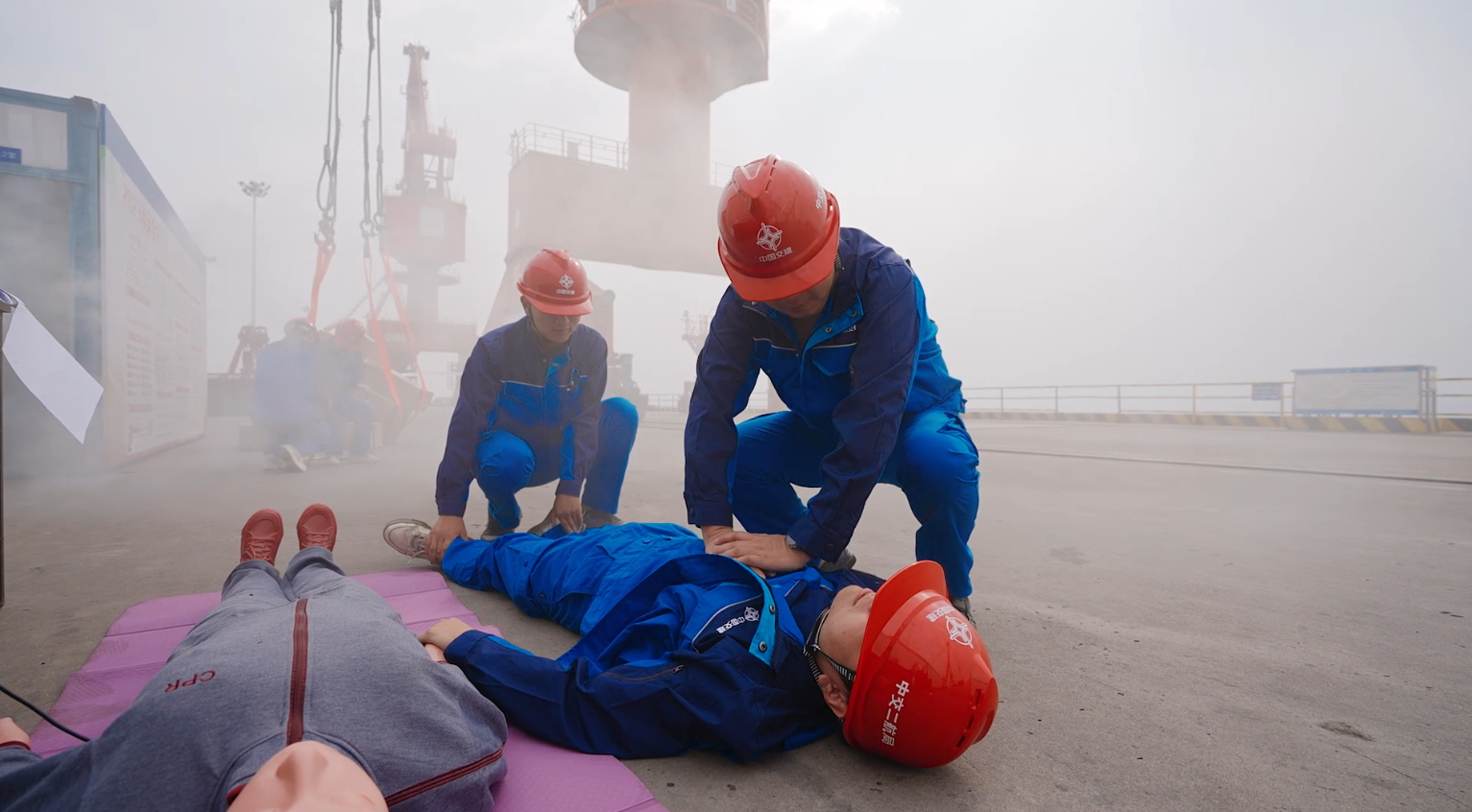 演练模拟码头作业现场突发阵风,,,,,,吊装移运中的货物碰撞运动板房,,,,,,板房内事情职员被撞伤,,,,,,并导致职员触电的突发情形。。。。。。事故爆发后,,,,,,各小组反应迅速、亲近配合,,,,,,顺遂完成应急疏散、现场封闭、秩序维持、后勤救护等应急处置惩罚环节。。。。。。