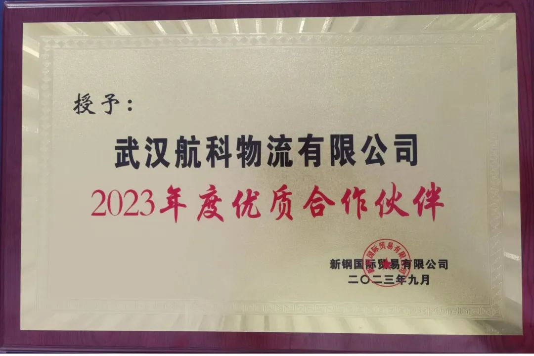 克日,,,,,,,,航科物流公司荣获湖南博长钢铁商业有限公司“战略合作伙伴”,,,,,,,,新钢国际商业有限公司“2023年度优质合作伙伴”两项主要声誉。。。。。。。