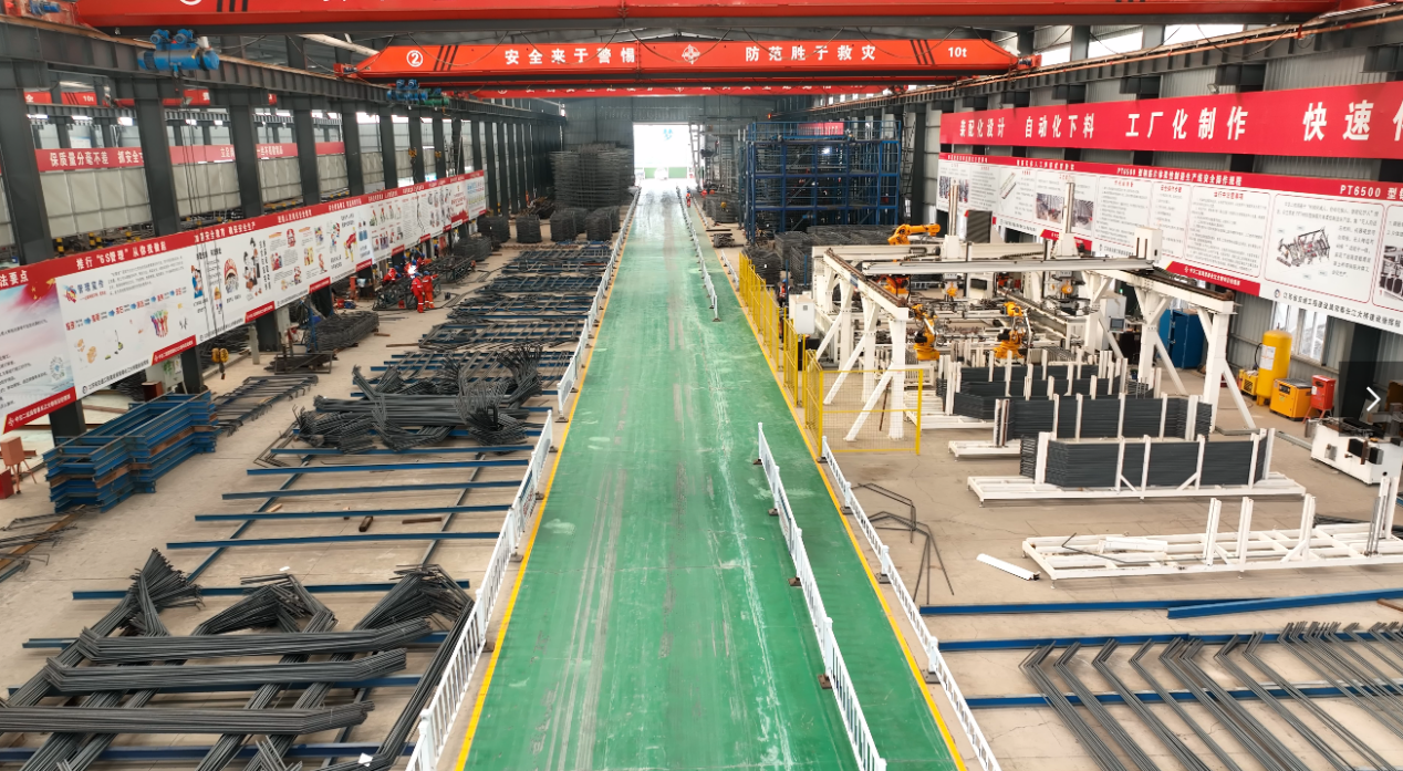 项目中标后,,,, ,,,手艺中心迅速建设专门攻关小组,,,, ,,,以“装配化设计、自动化下料、工厂化制作、快速化装置、智能化控制”为总体理念,,,, ,,,研究适用于常泰长江大桥主塔的钢筋部品装配化施工工艺,,,, ,,,自主研发了PT6500型钢筋片体柔性制造生产线KT6000型钢筋块体柔性制造生产线活动式钢筋部品组拼胎架等首台套装备,,,, ,,,形成了部品钢筋智能制造生产线,,,, ,,,将塔上钢筋施工转入地面工厂举行流水线同步作业 。。。。。。钢筋部品组拼成型后举行节段整体吊装,,,, ,,,接纳挤压锥套快速毗连,,,, ,,,大幅镌汰塔上钢筋作业时间,,,, ,,,且在混凝土等强时代完成钢筋施工,,,, ,,,不占用要害线路时间,,,, ,,,显著提高了塔柱施工效率 。。。。。。202287日举行首节段钢筋部品吊装至今,,,, ,,,五个月的时间里,,,, ,,,完成了21节段共84个钢筋部品施工,,,, ,,,主塔“长高”126