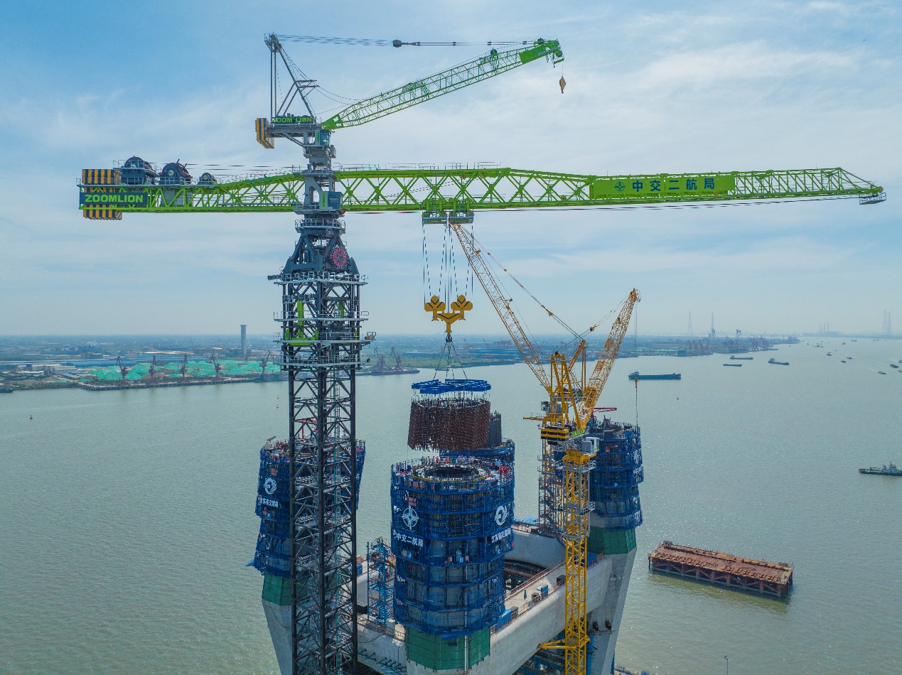 手艺中心助力常泰长江大桥5#墩中塔柱首节钢筋部品顺遂吊装完成