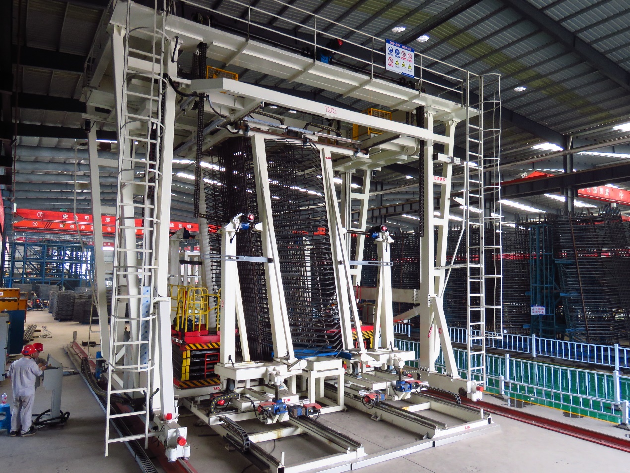手艺中心工程装备手艺部针对常泰长江大桥5#墩中塔柱的特有钢筋结构,,,,,提出了基于块体成型的超高索塔钢筋部品装配化施工工艺,,,,,以“装配化设计、自动化下料、工厂化制作、快速化装置、智能化控制”为总体思绪,,,,,打造了钢筋部品智能制造自动化生产线,,,,,新研发了“PT6500型钢筋片体柔性制造生产线”和“KT6000型钢筋块体柔性制造生产线”2套新型装备,,,,,解决铁路桥梁钢筋结构中箍筋互锁、结构重大的难题。。。。。。