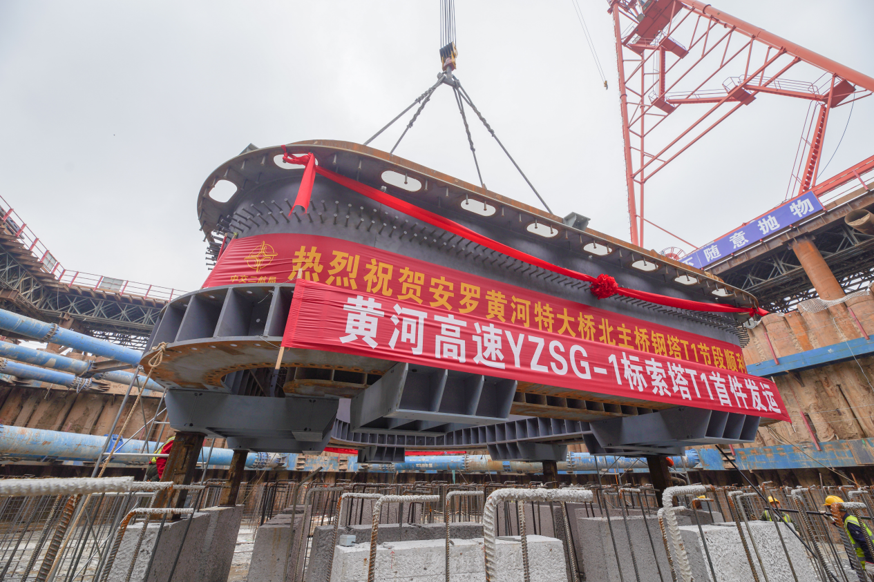 7月11日,, ,,,,优德88官网网站二航局承建的黄河最长公路桥梁安罗黄河特大桥北主塔首节钢壳节段吊装顺遂完成,, ,,,,标记着特大桥施工进入新的要害阶段。。。。。 。。