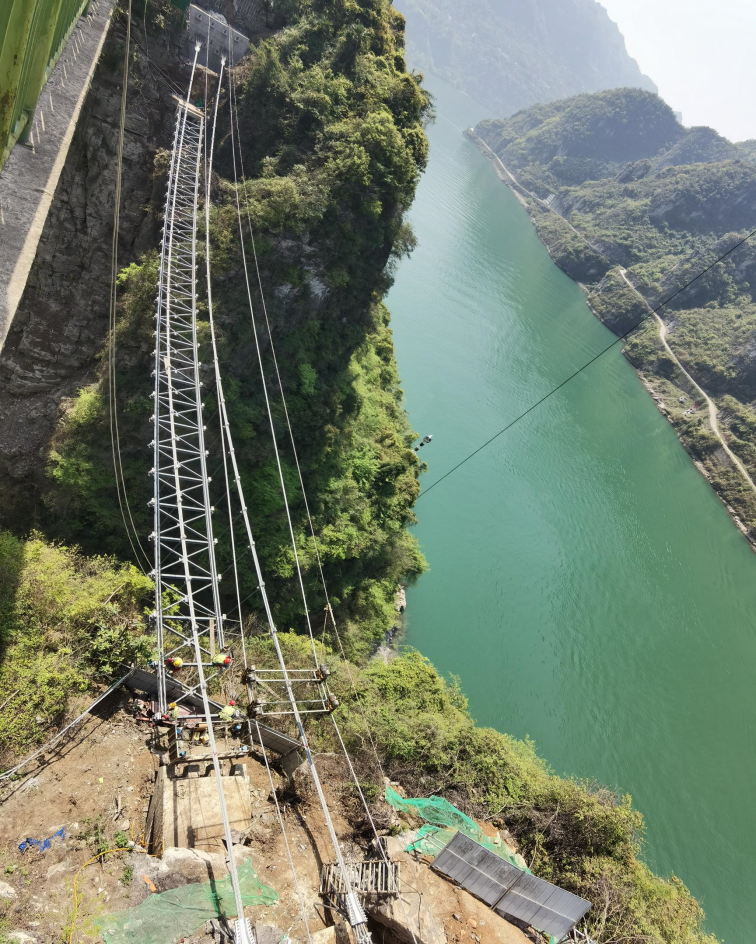 天柱山人行悬索桥涉及施工环节多、施工历程重大、历程控制精度要求高;桥梁位于长江三峡周围的U型河谷,, ,,,受峡谷风影响,, ,,,施工精度难以控制;桥梁锚碇直接布设于悬崖峭壁上,, ,,,主缆、桥面与河谷底部高差凌驾100m,, ,,,施工危害大。。 。。。