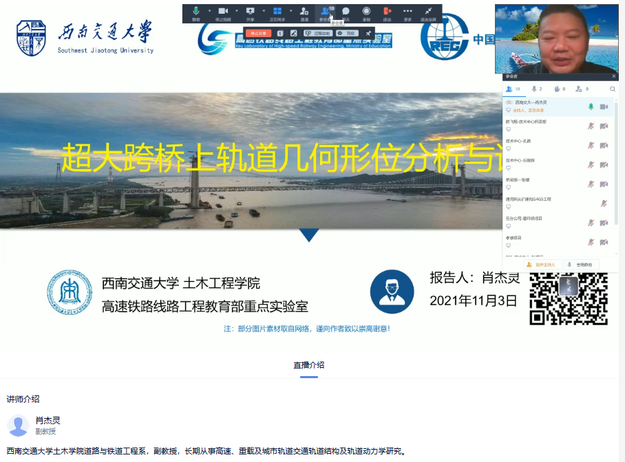 11ÔÂ3ÈÕ£¬£¬£¬£¬£¬£¬£¬£¬Î÷ÄϽ»Í¨´óѧÍÁľ½³³ÌѧԺõè¾¶ÓëÌúµÀ¹¤³Ìϵ¸±½ÌÊÚФ½ÜÁéÏÈÉúÓ¦ÑûÒÔ¡°³¬´ó¿çÇÅÉϹìµÀ¼¸ºÎÐÎλÆÊÎöÓëÆÀ¹À¡±ÎªÌâ×÷רÌâ½²×ù£¬£¬£¬£¬£¬£¬£¬£¬ÇÅÁº½á¹¹ÊÖÒÕ²¿Ö÷ÈÎÅí³ÉÃ÷Ö÷³ÖÁ˽²×ù¡£¡£¡£¡£¡£ËäÊÜÒßÇéÓ°Ï죬£¬£¬£¬£¬£¬£¬£¬Ð¤½ÌÊÚδÄܵ½ÏÖ³¡£¡£¡£¡£¡£¬£¬£¬£¬£¬£¬£¬£¬µ«ÊÖÒÕÖÐÐÄÇÅÁº½á¹¹ÊÖÒÕ²¿¡¢ÖÇÄÜ¼à¿Ø²¿µÈ²¿·ÖÔ±¹¤ÈÈÇé²»¼õ£¬£¬£¬£¬£¬£¬£¬£¬Í¨¹ýÏßÉÏ·½·¨Ó»Ô¾¼ÓÈë¡£¡£¡£¡£¡£