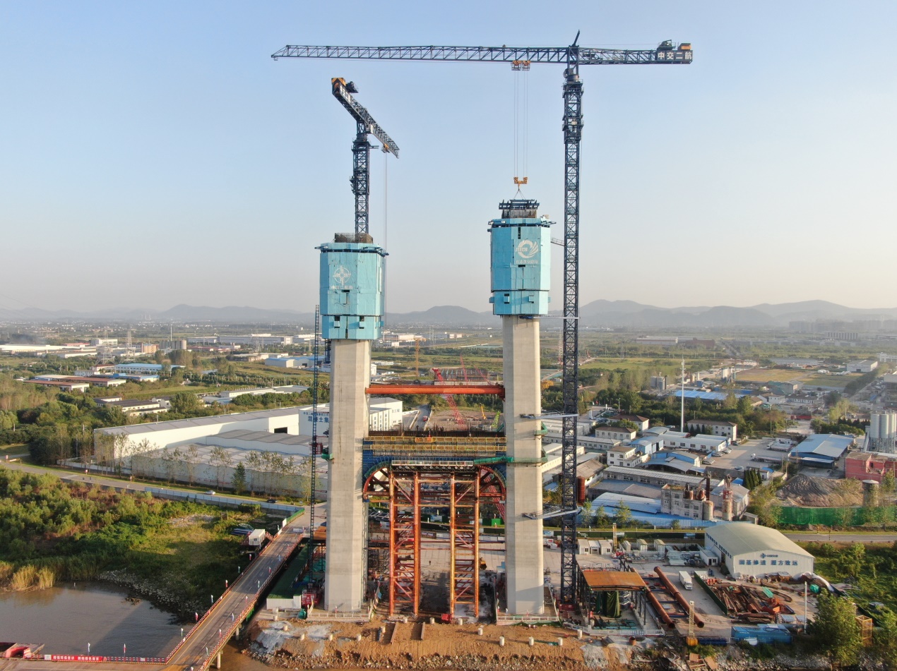 925 日 ,,,,,龙潭长江大桥南塔下横梁顺遂完成第一层混凝土的浇筑 ,,,,,标记着塔柱施工转入了新阶段。。。。。。。