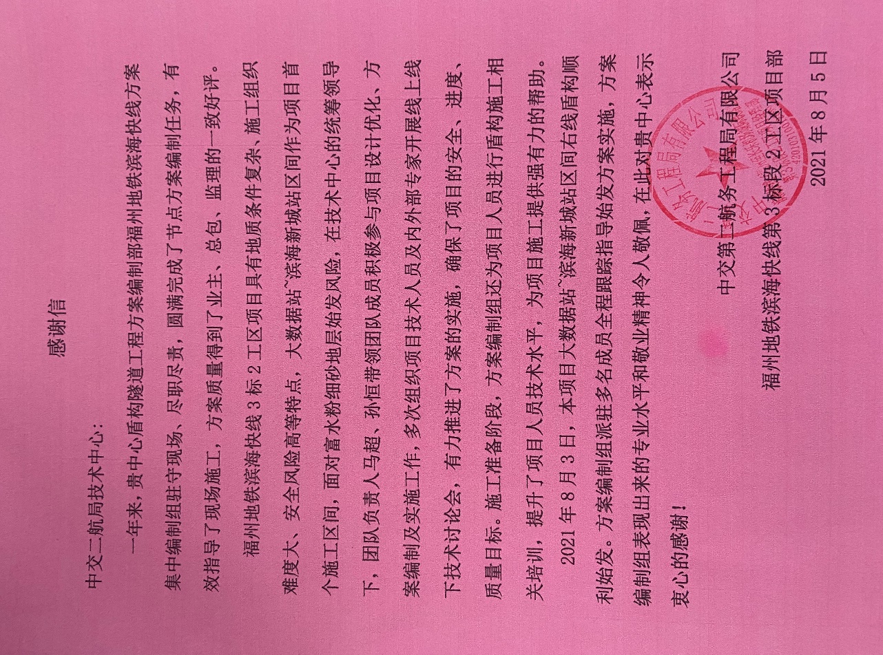 8ÔÂ7ÈÕ£¬£¬£¬£¬£¬£¬£¬£¬ÊÖÒÕÖÐÐÄÊÕµ½Ò»·âÀ´×Ô¸£ÖݵØÌú±õº£¿£¿£¿£¿£¿ìÏßÏîÄ¿²¿µÄ¡¶Ð»Ð»ÐÅ¡·:¡°ÔÚÊÖÒÕÖÐÐĵÄͳ³ïÏòµ¼Ï£¬£¬£¬£¬£¬£¬£¬£¬¶Ü¹¹ËíµÀ¼Æ»®ÌåÀý²¿ÈÏÕæÈËÂí³¬¡¢ËïºãÏòµ¼ÍŶӳÉÔ±Æð¾¢¼ÓÈëÏîÄ¿Éè¼ÆÓÅ»¯¡¢¼Æ»®ÌåÀý¼°ÊµÑéÊÂÇ飬£¬£¬£¬£¬£¬£¬£¬¶à´Î×éÖ¯ÏîÄ¿ÊÖÒÕÖ°Ô±¼°ÄÚÍⲿר¼Ò¿ªÕ¹ÏßÉÏÏßÏÂÊÖÒÕÌÖÂۻᣬ£¬£¬£¬£¬£¬£¬£¬ÓÐÁ¦ÍƽøÁ˼ƻ®µÄʵÑ飬£¬£¬£¬£¬£¬£¬£¬È·±£ÁËÏîÄ¿µÄÇå¾²¡¢½ø¶È¡¢ÖÊÁ¿Ä¿µÄ¡£¡£¡£¡£¡£Ê©¹¤×¼±¸½×¶Î£¬£¬£¬£¬£¬£¬£¬£¬¼Æ»®ÌåÀý×黹ΪÏîĿְԱ¾ÙÐжܹ¹Ê©¹¤Ïà¹ØÅàѵ£¬£¬£¬£¬£¬£¬£¬£¬ÌáÉýÁËÏîĿְԱÊÖÒÕˮƽ£¬£¬£¬£¬£¬£¬£¬£¬ÎªÏîĿʩ¹¤ÌṩǿÓÐÁ¦µÄ×ÊÖú¡£¡£¡£¡£¡£ ¡±